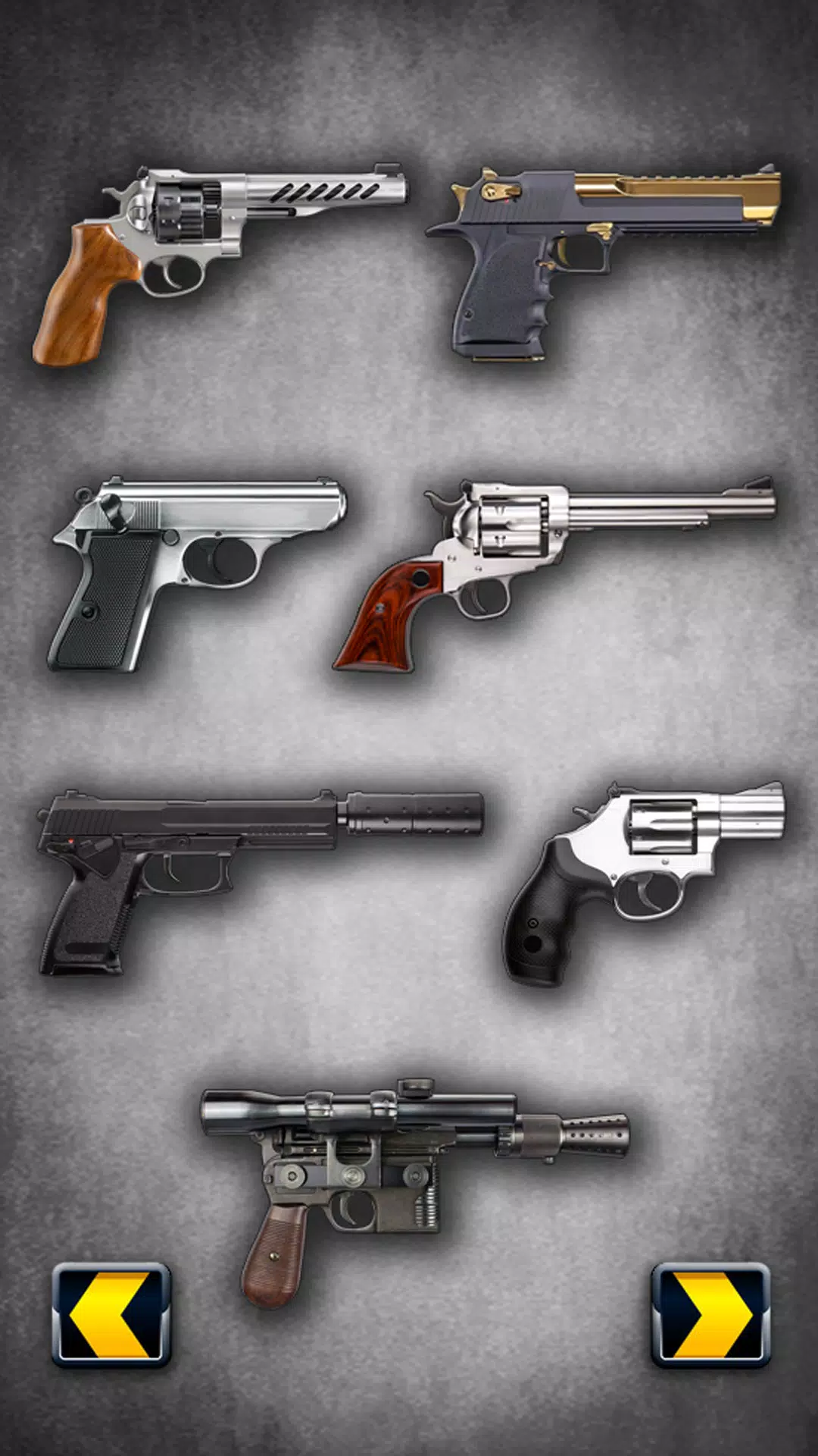 如果你喜欢玩虚拟枪支,我们会为你提供像狂野西部左轮手枪这样的旧枪支或像激光枪这样的现代枪支。 也有射声大的大枪,也有间谍用的那种小枪。 我们还包括带有消音器的手枪,它具有非常有特色的声音。 摇动设备进行射击,它会激活相机的闪光灯,模拟枪支开火时发出的闪光。