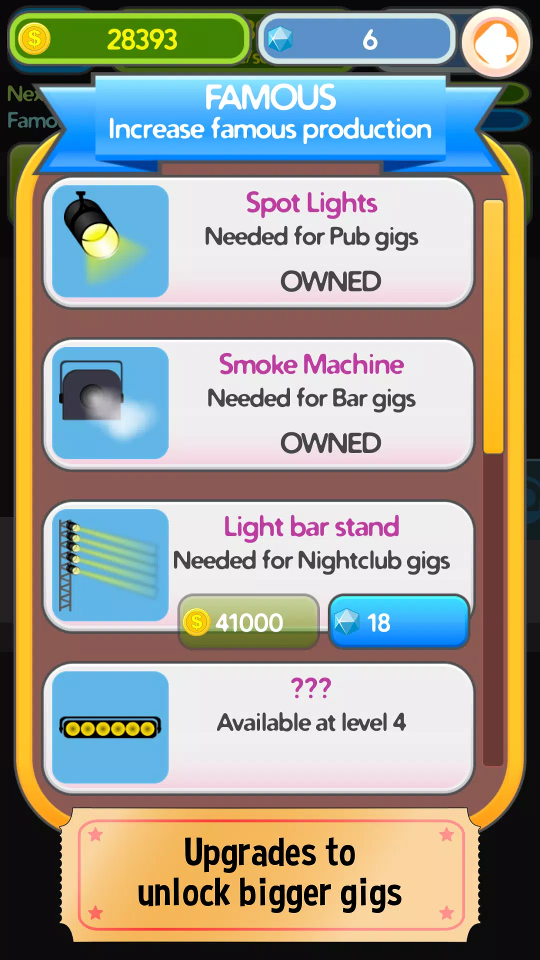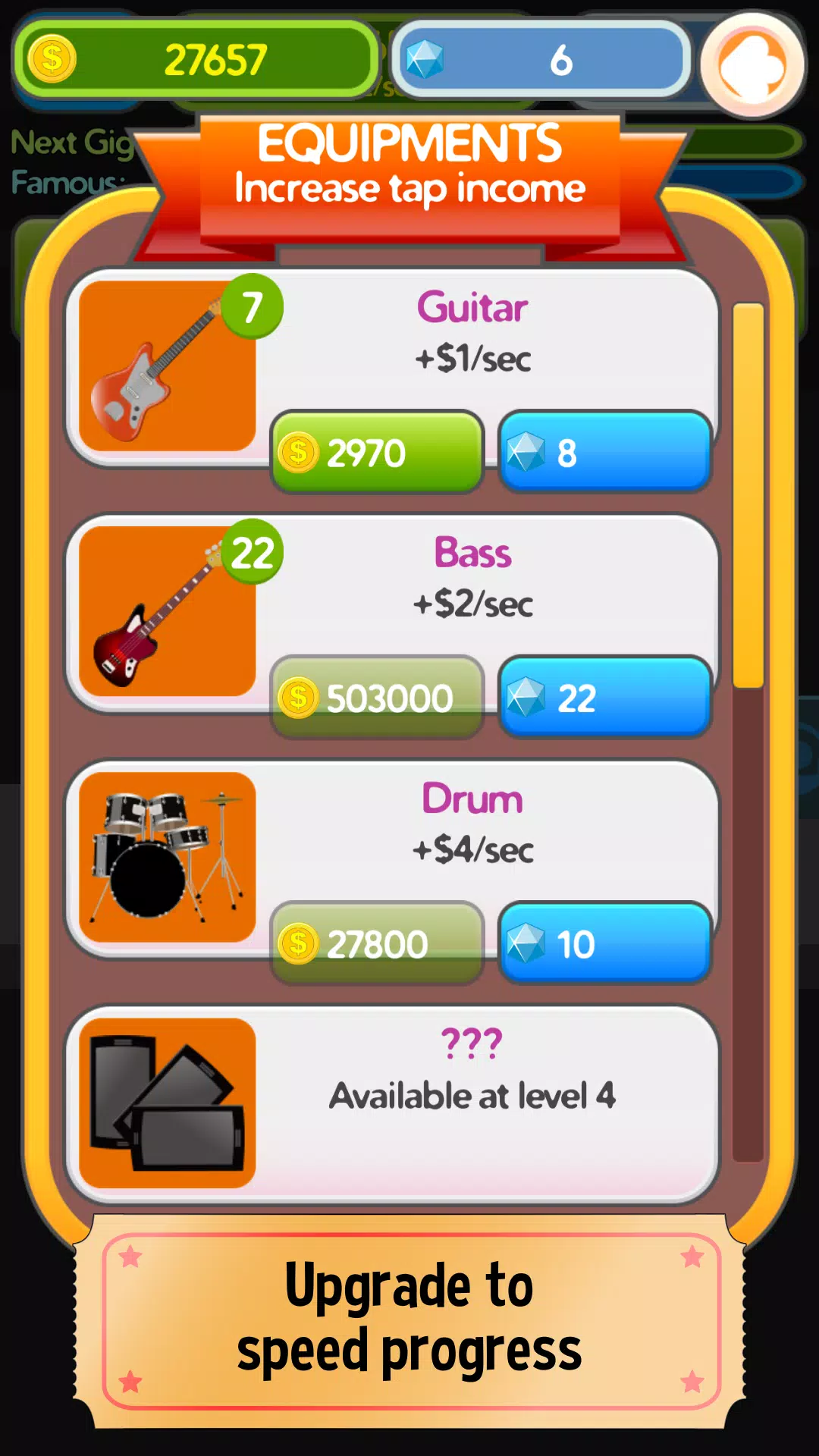 投资尖端设备升级,加速你成为摇滚巨星的崛起。