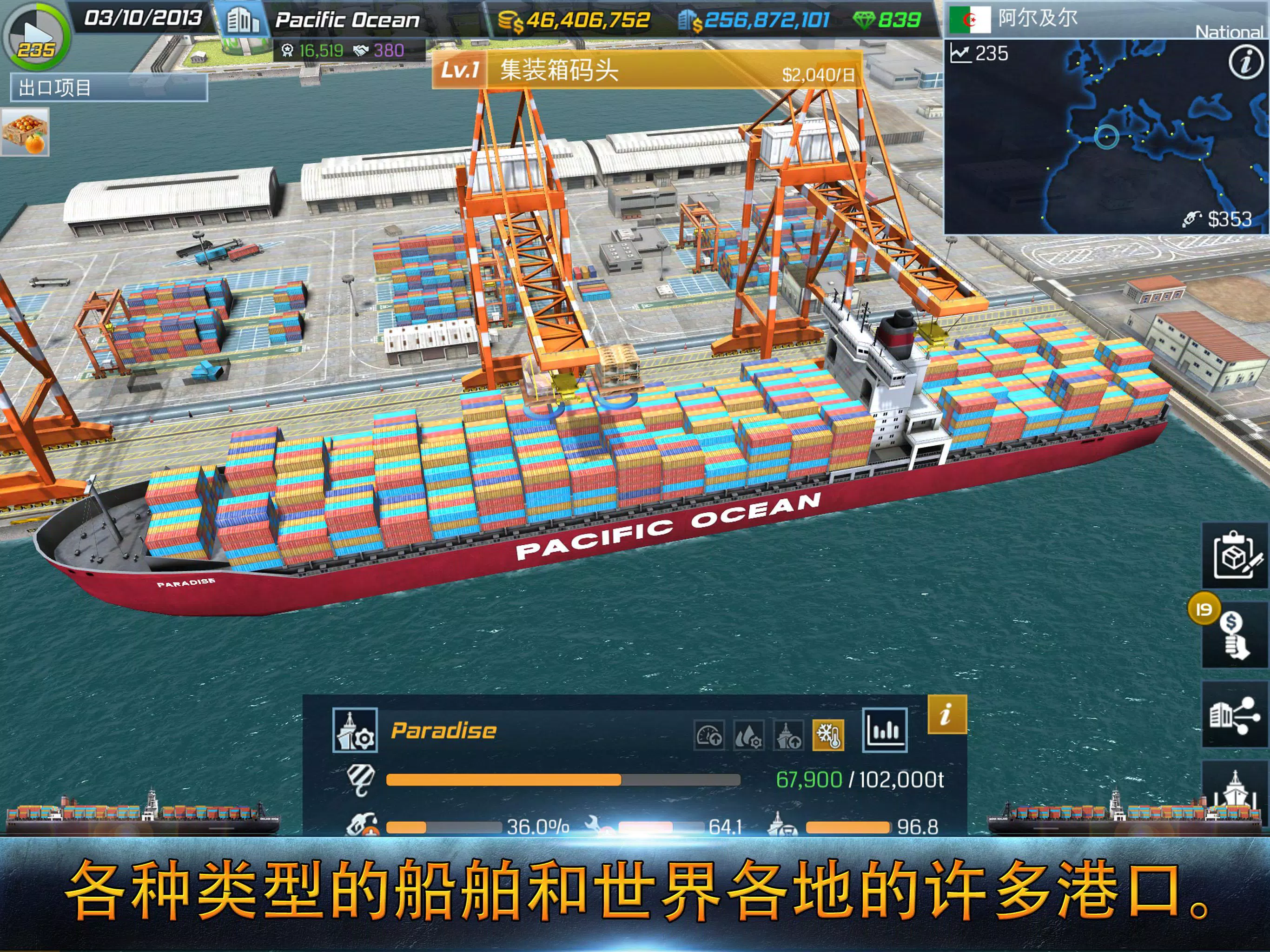 当你第一次开始你的游戏,你的公司开始一个小型散货船,但根据你的管理技能和努力,你的公司可以变成一个全球船运公司与巨大的船队