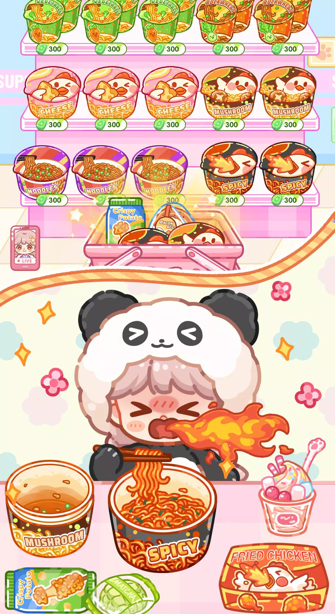 Visit the supermarket —— a paradise for foodies! Shopping here and streaming is also a way to earn coins!