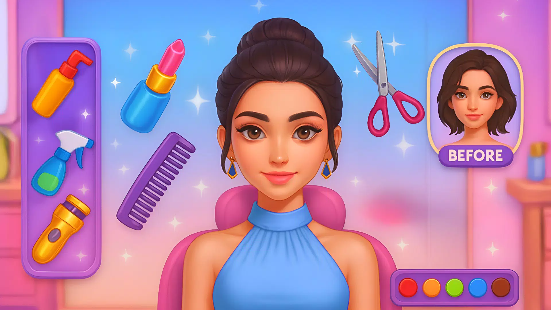 ✂️ 美发沙龙造型师:剪发、染发、造型 ✂️ 像专业造型师一样洗发、吹干、剪发和染发。尝试不同的发型和发色,搭配每一套服装。化妆和美发沙龙游戏完美结合,打造完整的时尚造型。