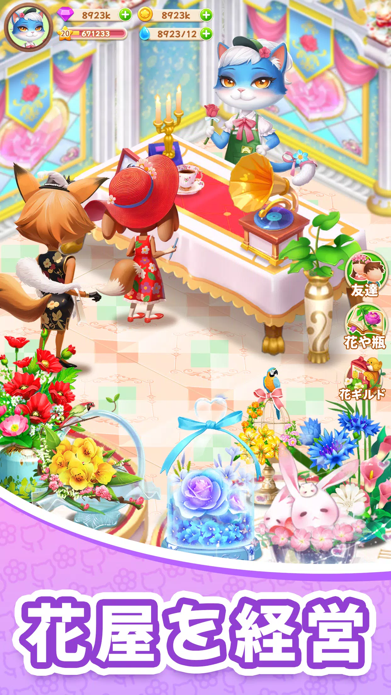 用精美的装饰品装点你的花店,与动物伙伴们一起发展你的花店!