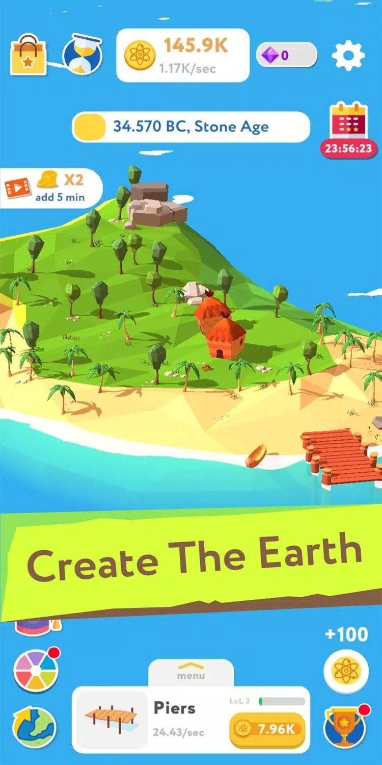 在这个游戏中,你不仅可以观察,而且可以参与领地和生物的创造和发展。你会看到不同的时代:石器时代、罗马时代和未来。你会感觉自己正在建造整个世界,成为世界上最伟大的大亨!