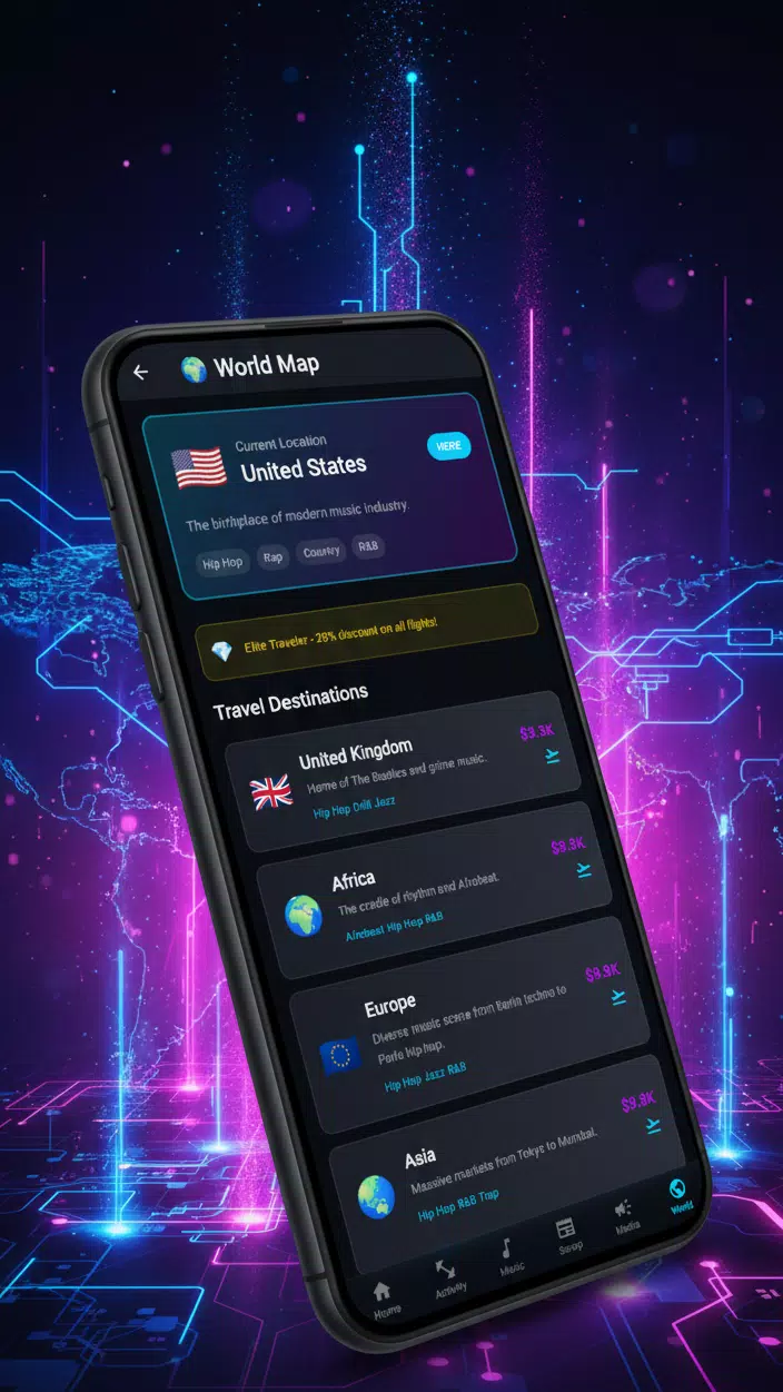 投身音乐巨星的世界,每一个决定都至关重要。从怀揣梦想的艺术家起步,通过策略性的歌曲创作、病毒式营销和排行榜霸主地位,打造你的全球音乐帝国。与世界各地的真实玩家同台竞技,证明你拥有成为下一个蕾哈娜、德雷克或肯德里克·拉马尔的实力!