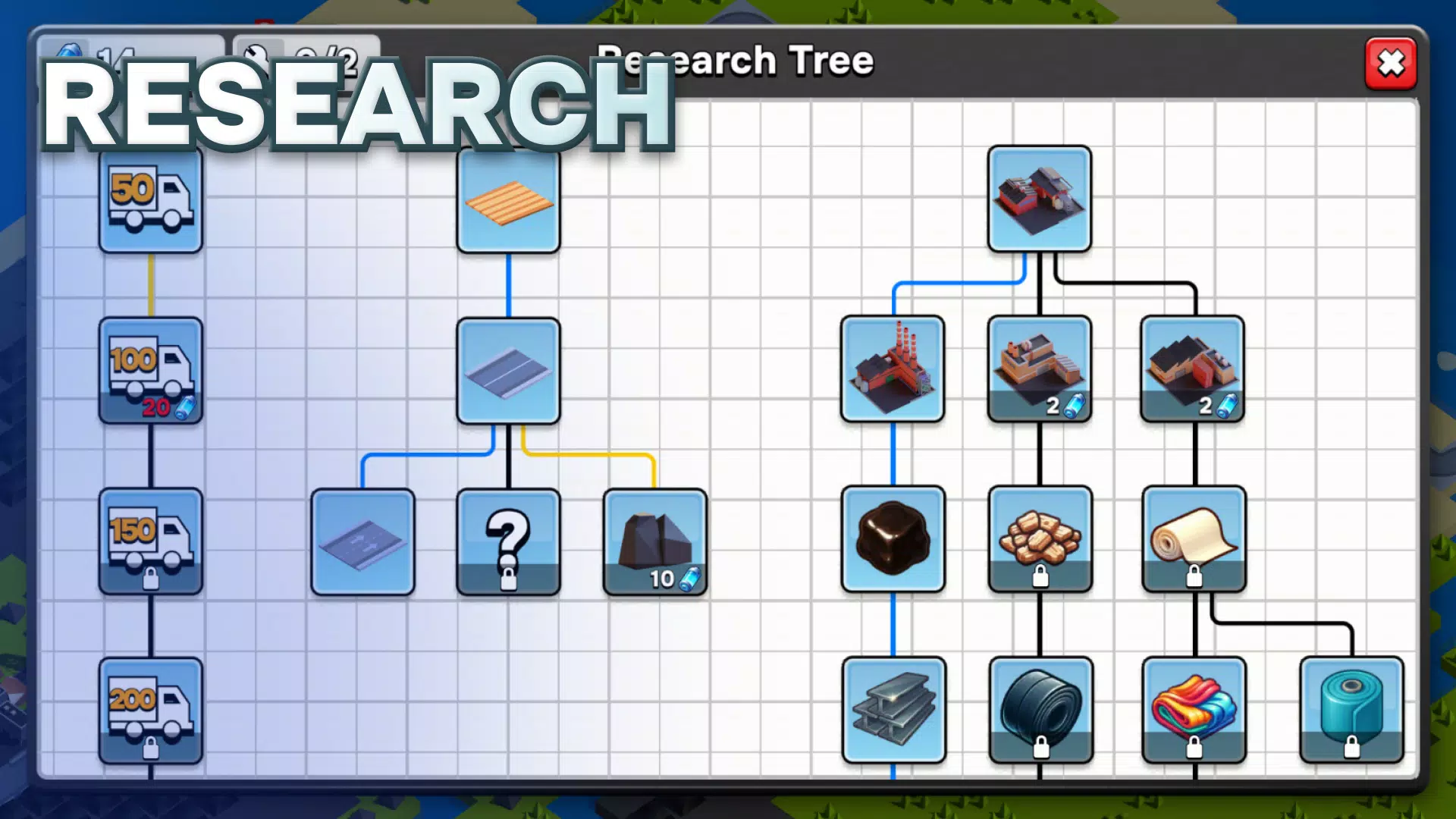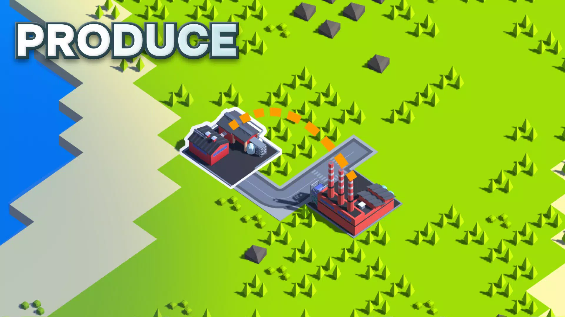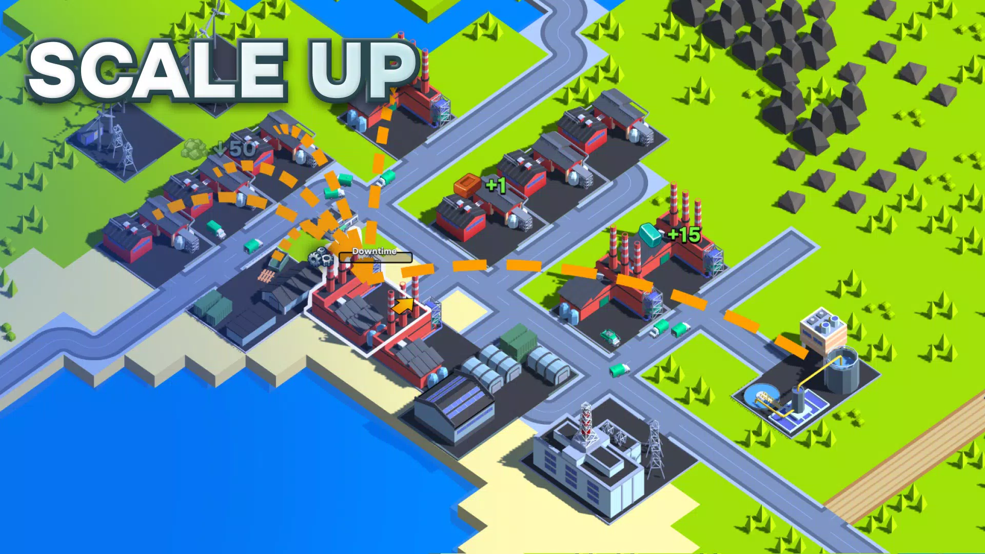 使用三种类型的道路(泥土路、城市路和高速公路)连接您的基础设施。规划路线并扩展您的物流网络,以确保生产顺畅进行。