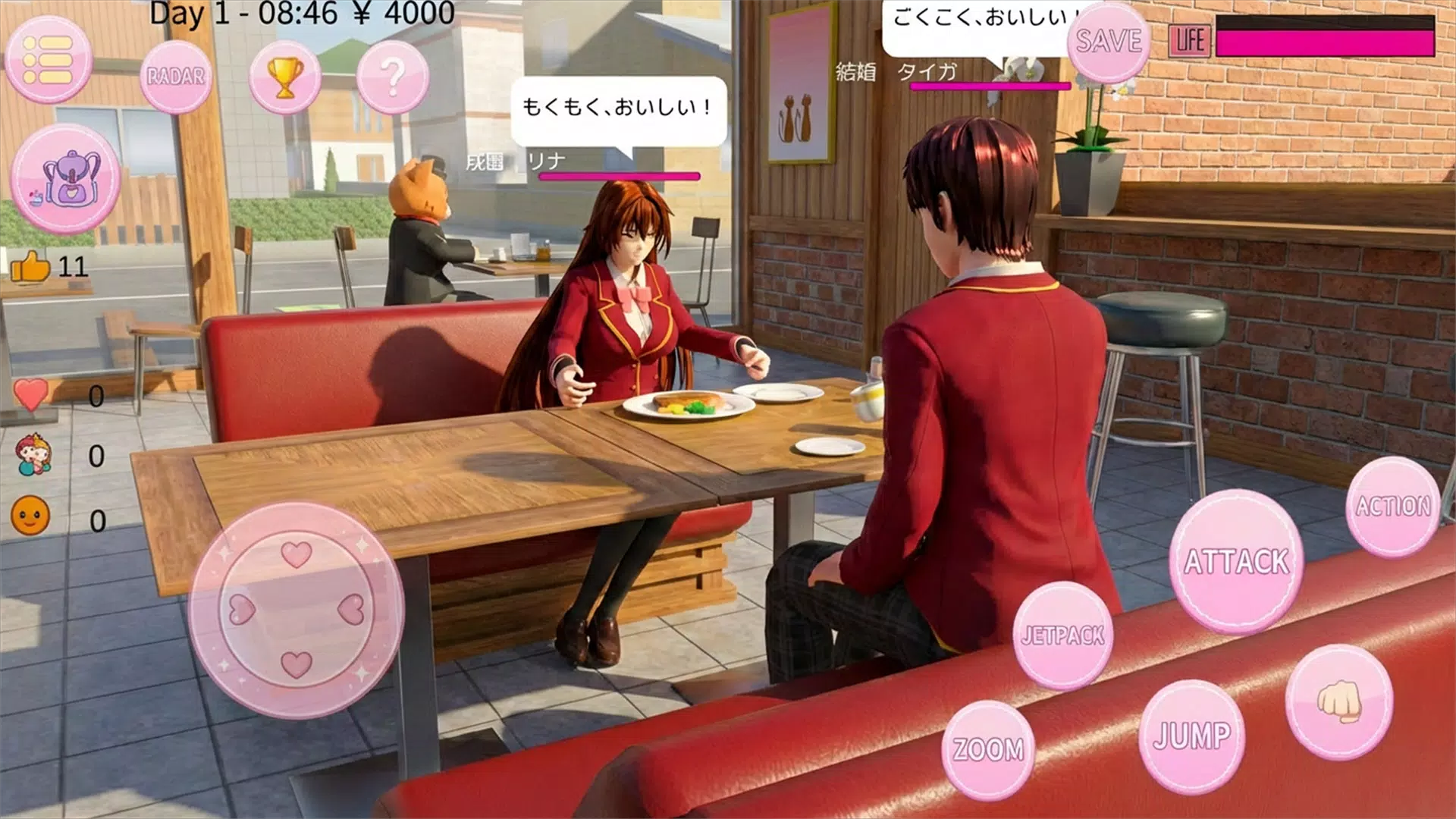 互动游戏:参与课堂任务、驾驶车辆、加入体育俱乐部或在咖啡馆打工赢取奖励。