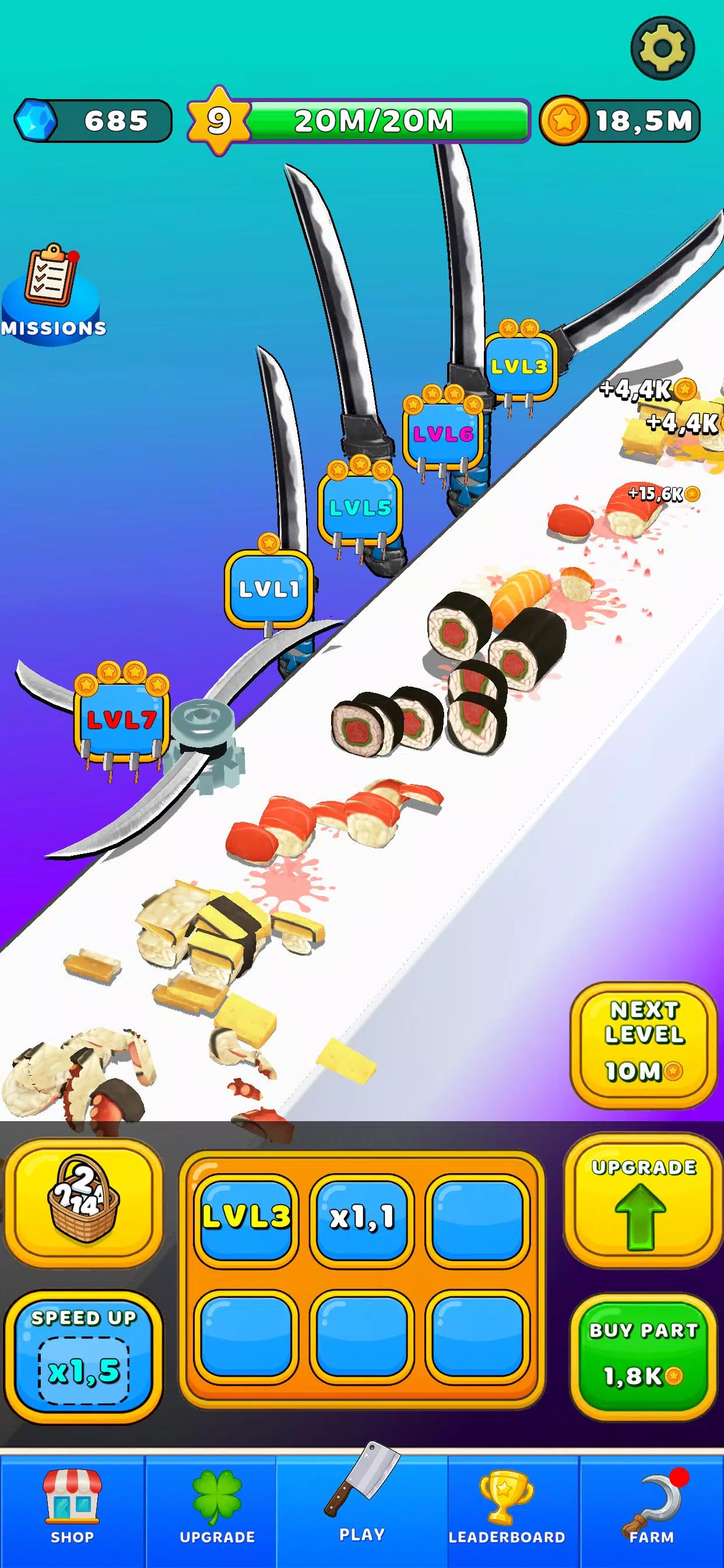 切割、升级并强化你的切割工厂!切割鱼线,收集珍贵鱼片,强化刀片,更快赚取收益。解锁新刀具,激活速度加成,并安装特殊齿轮,打造最高效的切割装置。