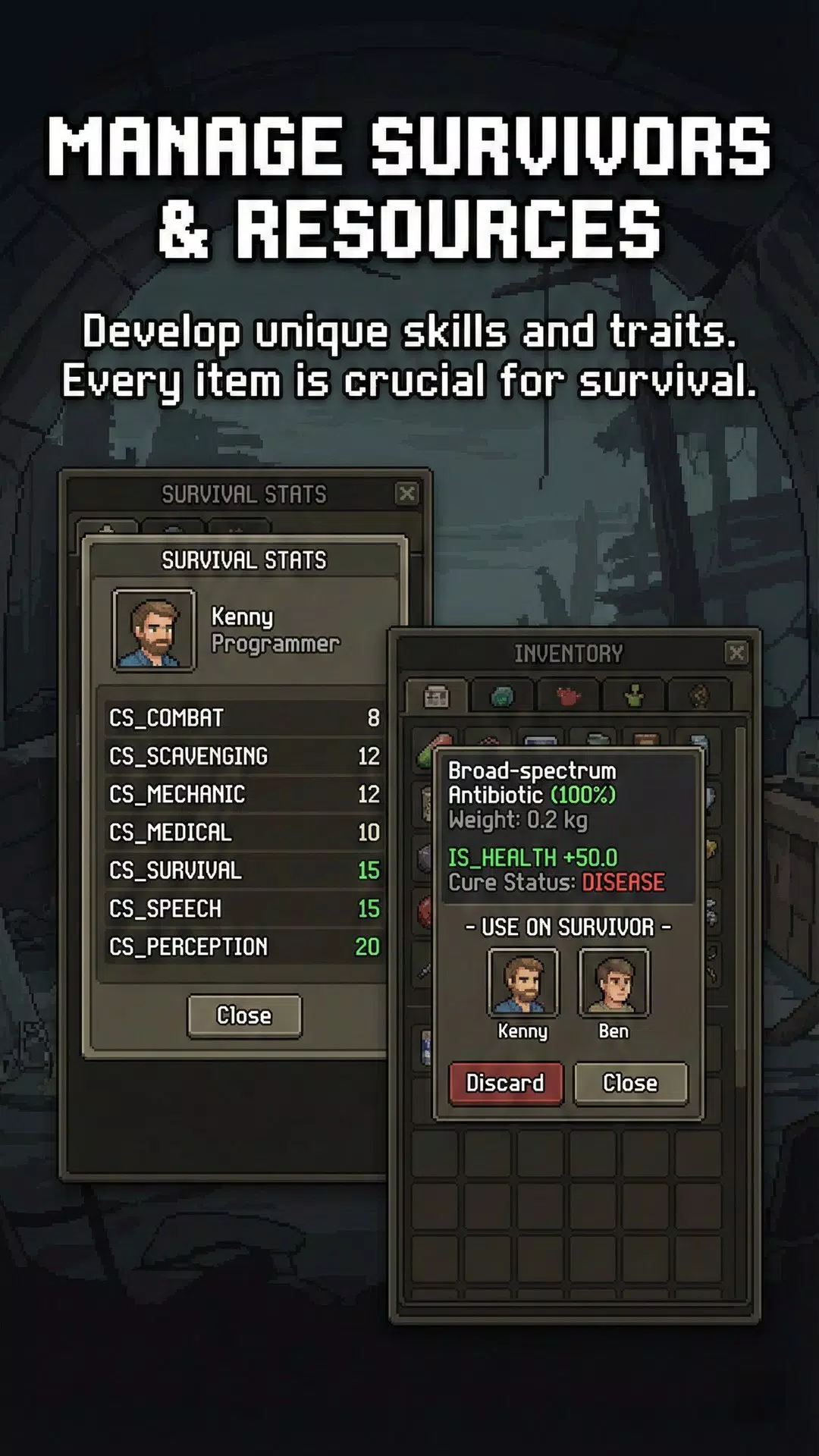在你的旅途中,你会遇到形形色色的幸存者——士兵、程序员、药剂师、机械师和普通市民。每种职业都会为你的队伍带来独特的生存技能和属性加成。但你的车只能容纳四个人。你必须做出艰难的抉择:谁能加入你的队伍,谁又只能被留在废土之上。