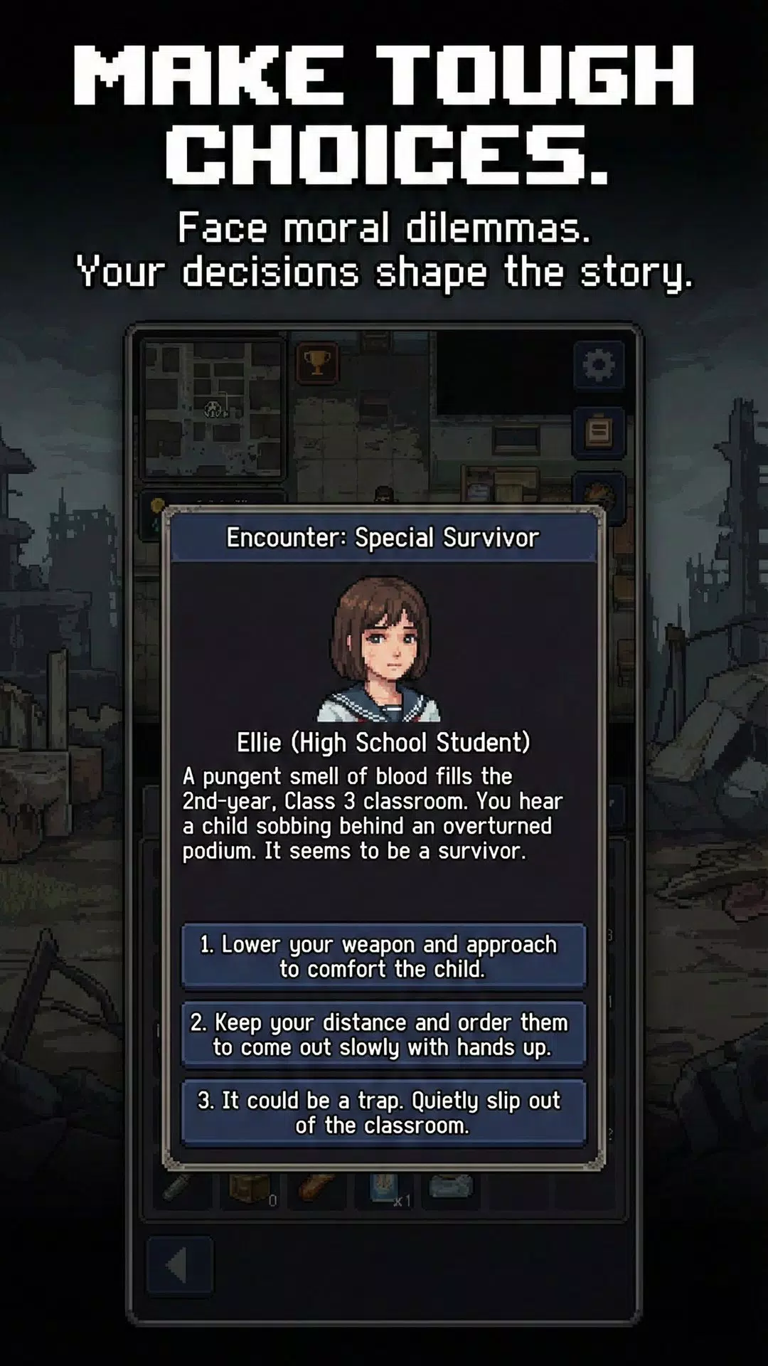 通过丰富的文字事件,直面残酷的道德困境。你会为了救一个哭泣的孩子而冒险进入陷阱吗?你会把珍贵的水分享给一个垂死的陌生人吗?每一个选择都会产生直接和深远的影响,塑造你的旅程。
