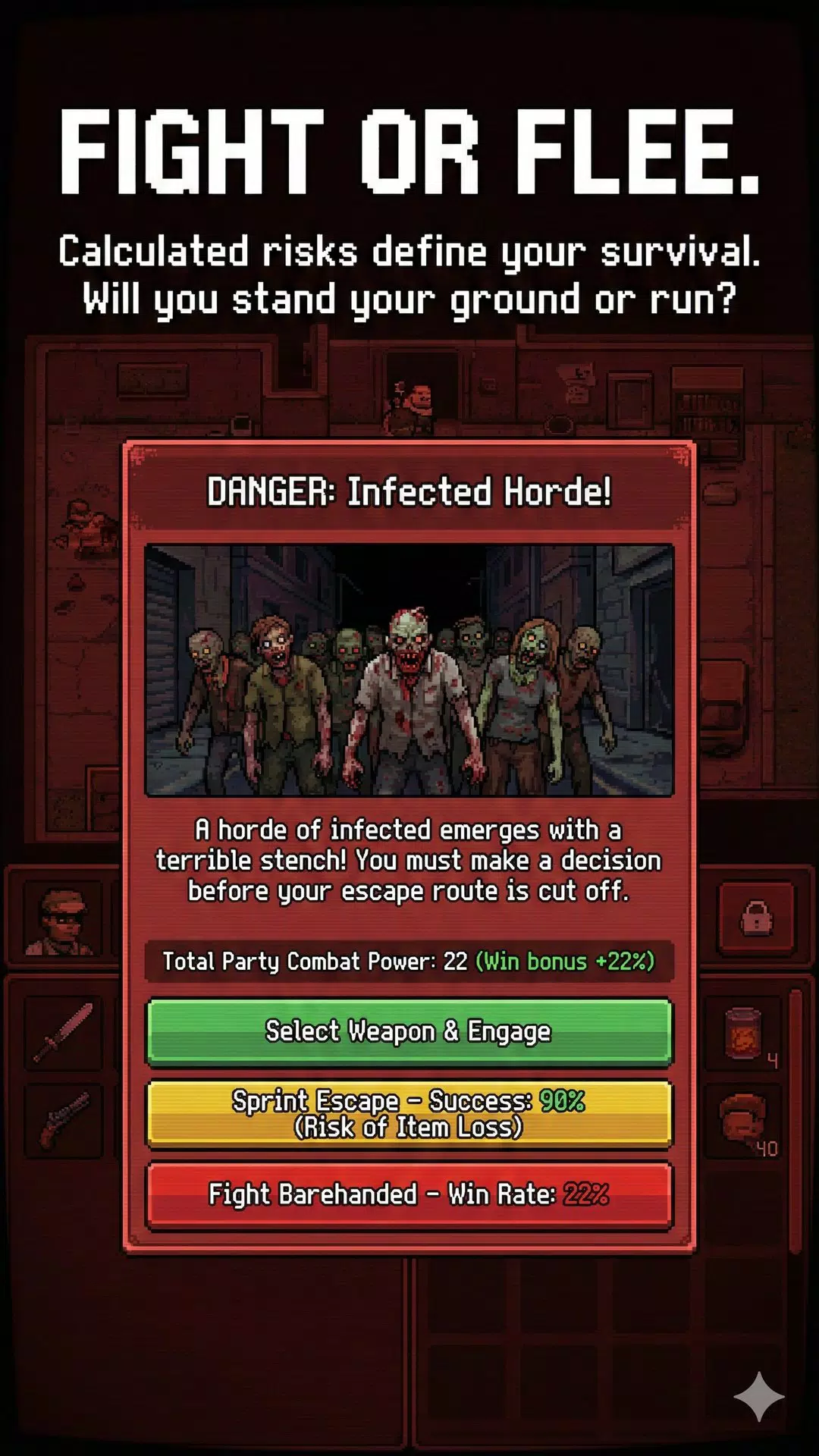 当被感染者或敌对的拾荒者围困时,你必须权衡利弊。是利用队伍的合力战斗,还是选择逃跑——但这样可能会失去你辛辛苦苦获得的战利品?