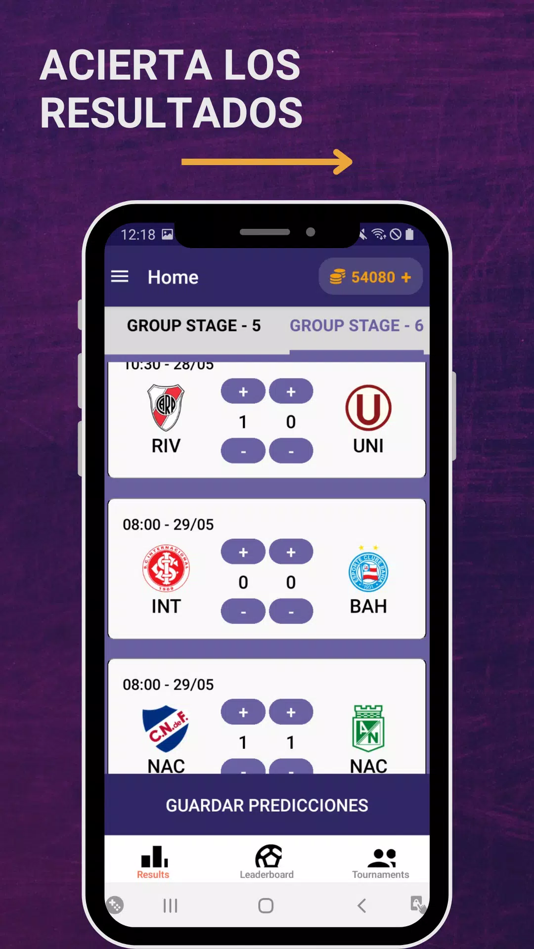 预测比赛结果和世界足球联赛的日期,以获得小组积分并成为积分榜第一。