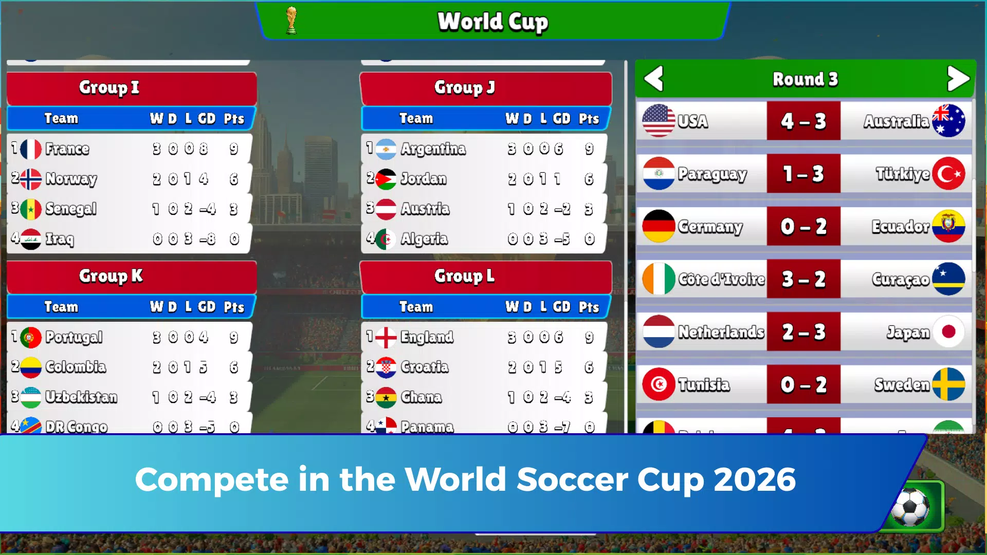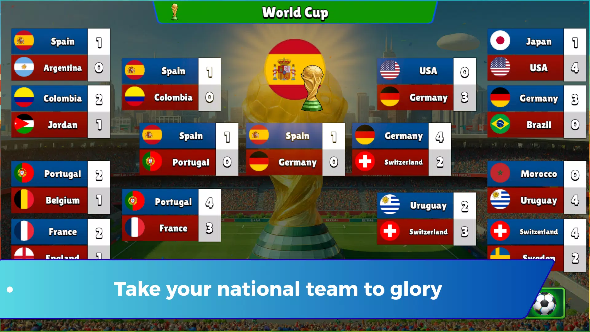 每场比赛都充满紧张刺激,带给你完整的世界足球体验。