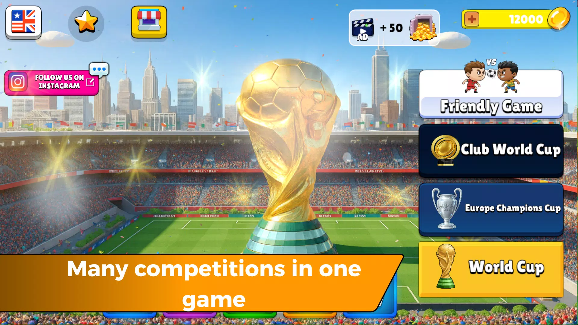 参与史上规模最大的头球足球锦标赛,与来自世界各地超过 800 支球队同场竞技。征战 2026 年世界杯、欧洲冠军杯和世俱杯,每项赛事都包含小组赛、附加赛和激烈的淘汰赛。