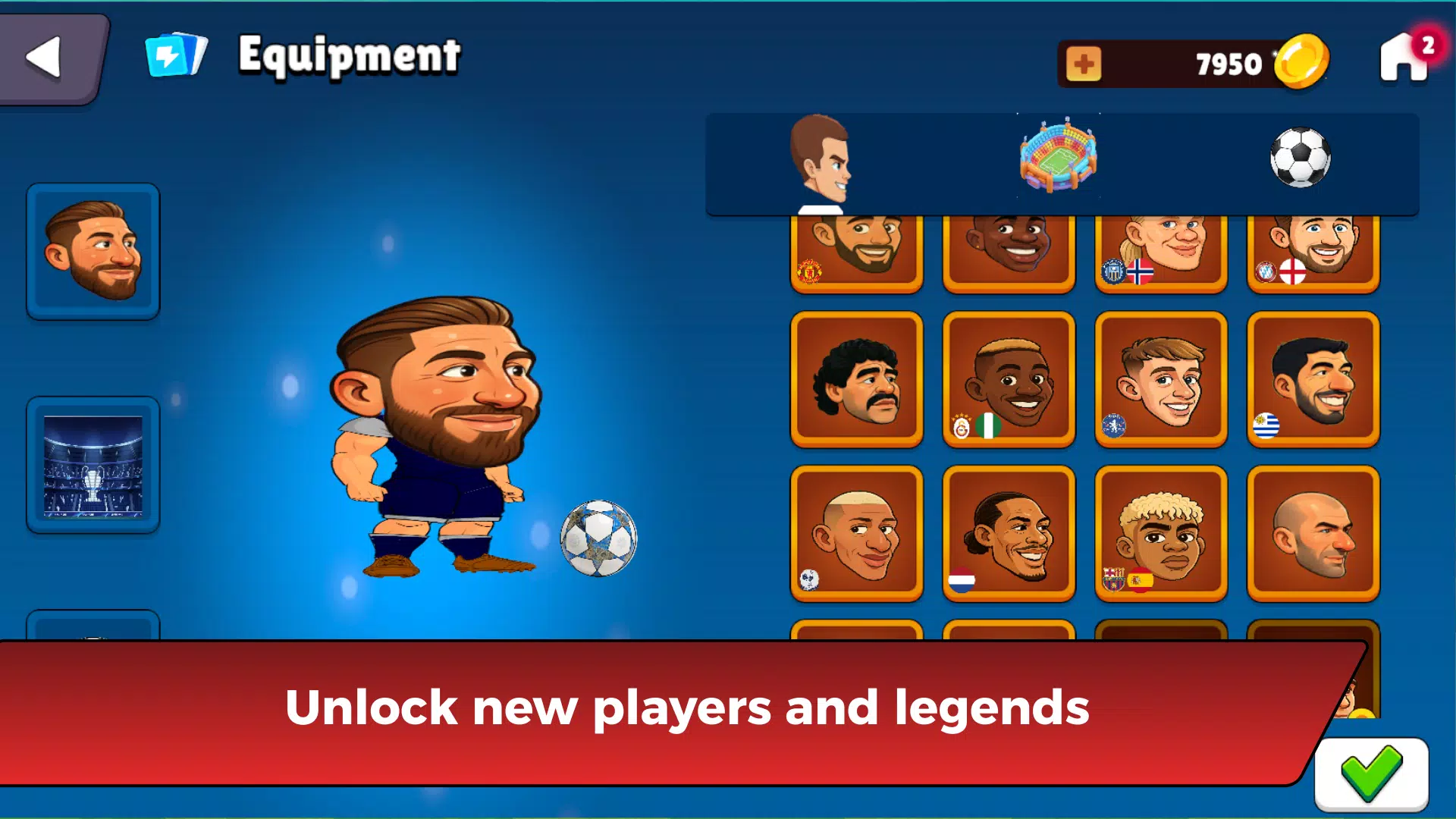 解锁新球员、球场和道具