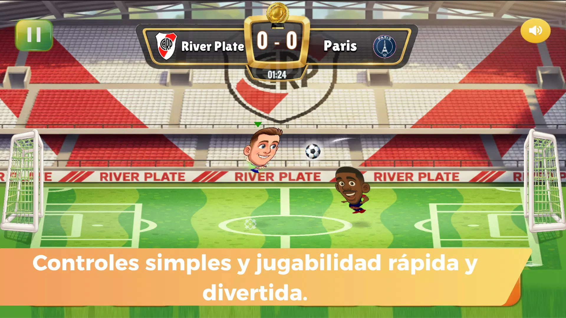 游戏操作简单,以头球、跳跃和快速射门为主,非常适合节奏快、节奏快的比赛。游戏界面现代友好,适合所有年龄段的玩家。