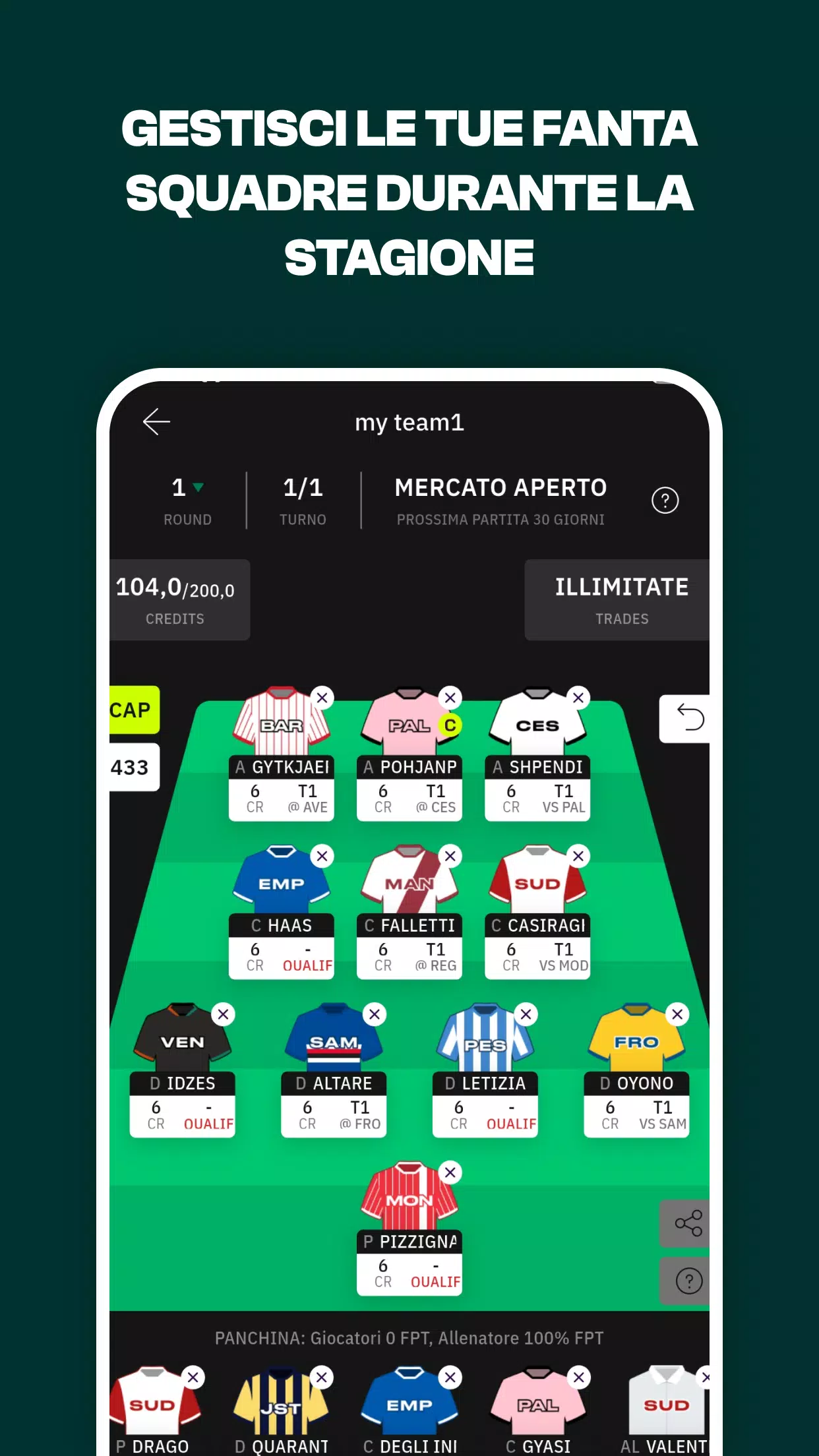 6. 市场:在一个又一个比赛日之间,市场会重新开放,您可以通过出售球员、恢复其积分价值以及购买新球员来进行转会。
