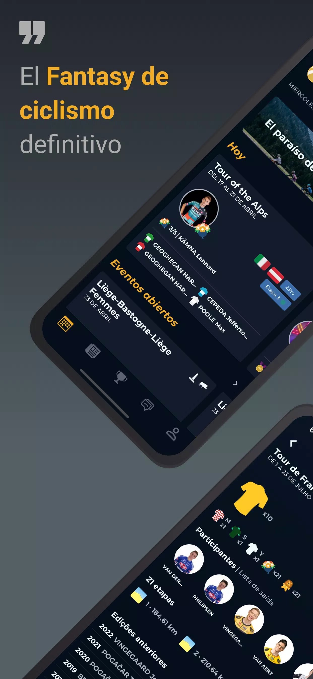 Cycling Fantasy 不仅仅是一款体育游戏,它是面向专业自行车爱好者的领先梦幻平台。