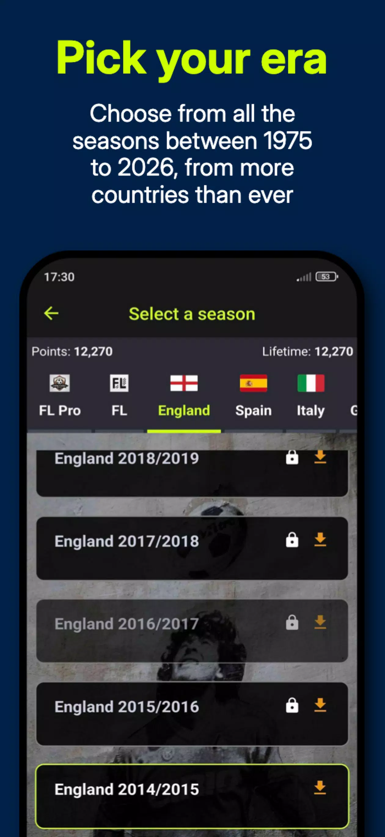 – 超过 200 个赛季:畅玩超过 200 个赛季,其中许多赛季包含多个级别,重温足球历史。