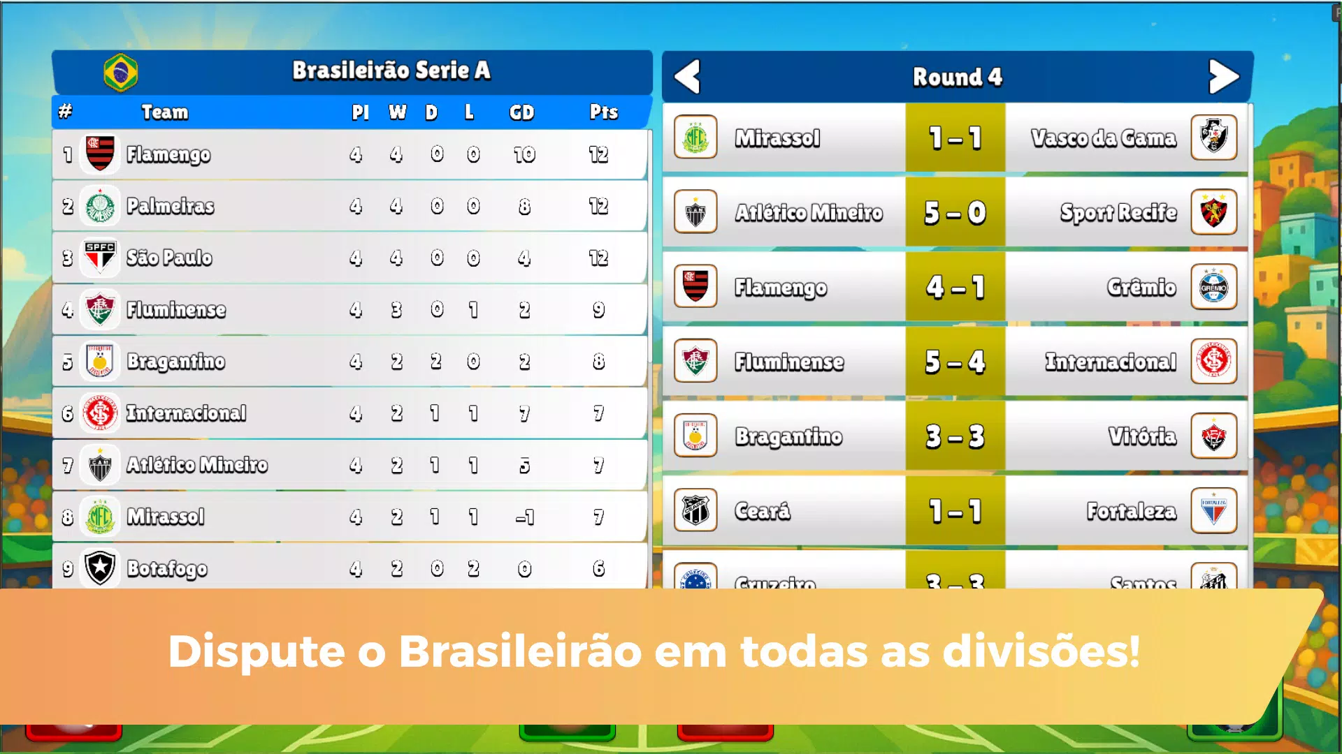 立即下载,体验以巴西和世界足球为背景的完整足球生涯。