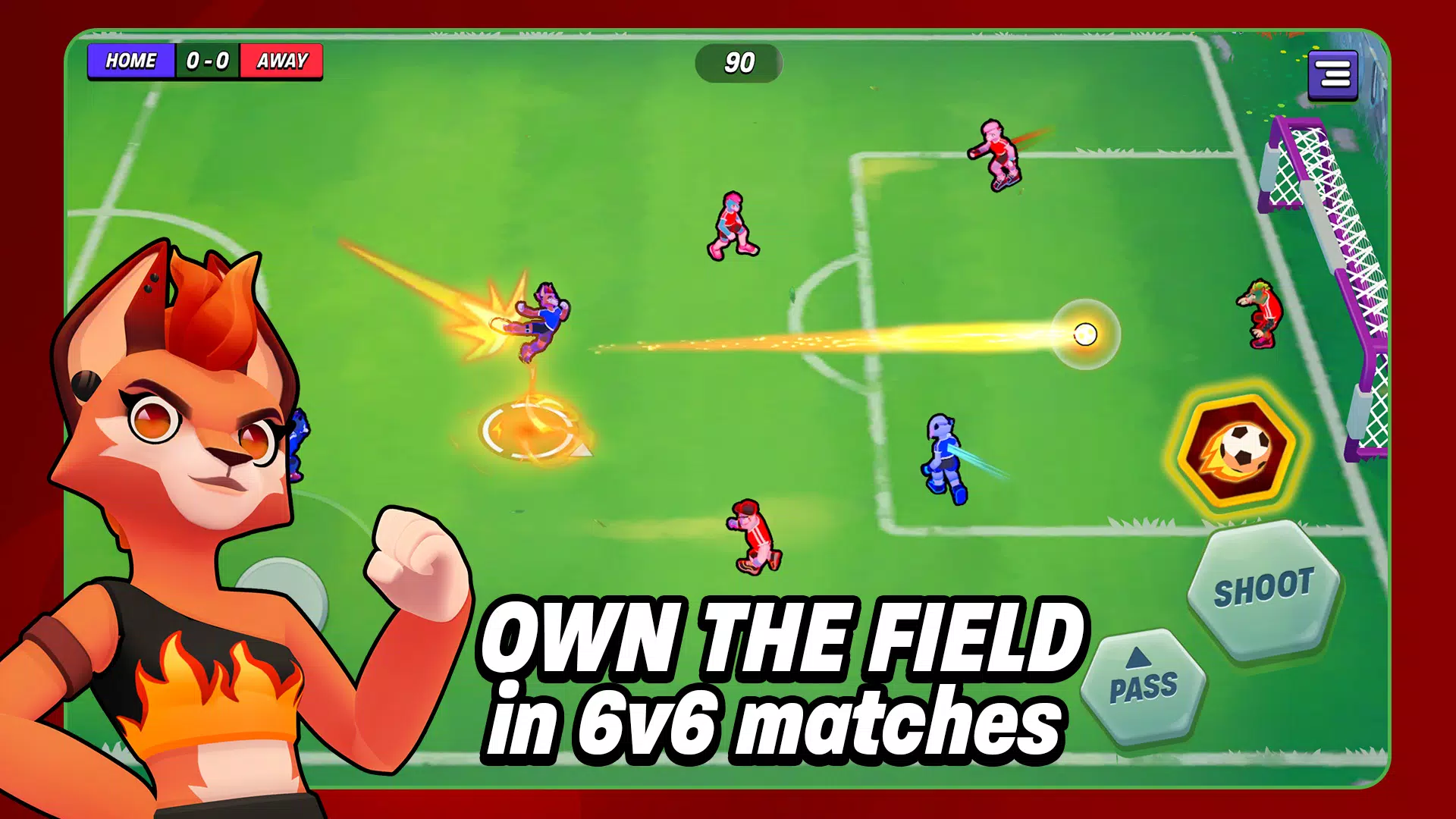 踏入在线足球世界,在时长不到两分钟的 6 对 6 竞技场比赛中,技巧、速度和策略碰撞出精彩火花!无论您是与好友在线对战还是单人对战,每场比赛都是您破门得分、展现最佳射门能力的绝佳机会。