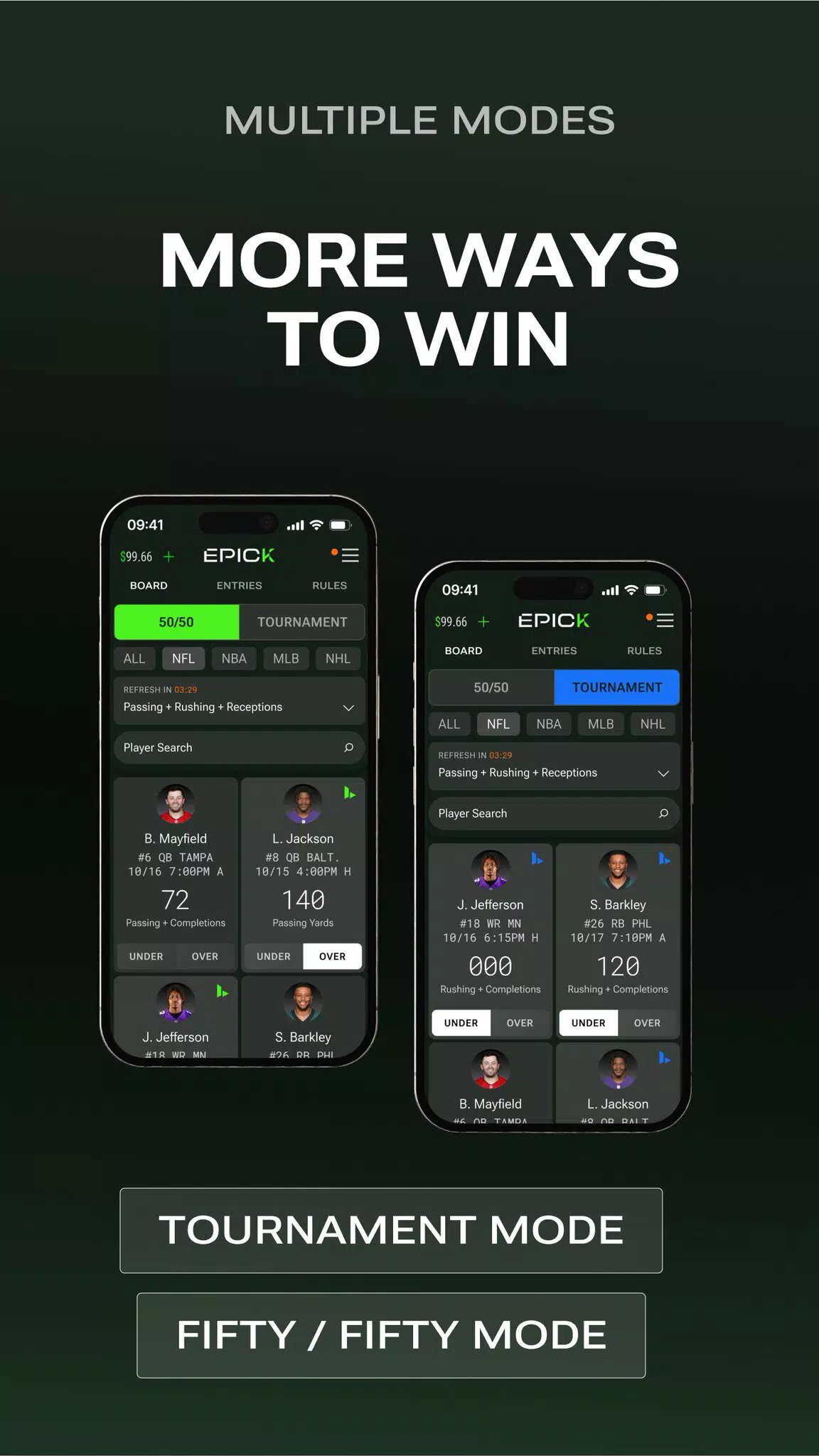 下载 EPICK™,体验点对点梦幻体育的未来。
