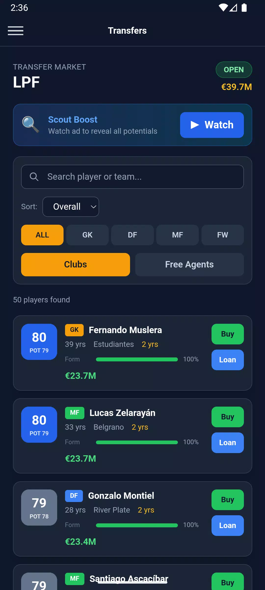 💸 主宰转会市场 打造你的梦幻球队。挖掘潜力新星,出售闲置球员,并在预算范围内洽谈合同。你会签下成名巨星,还是培养下一代球星?