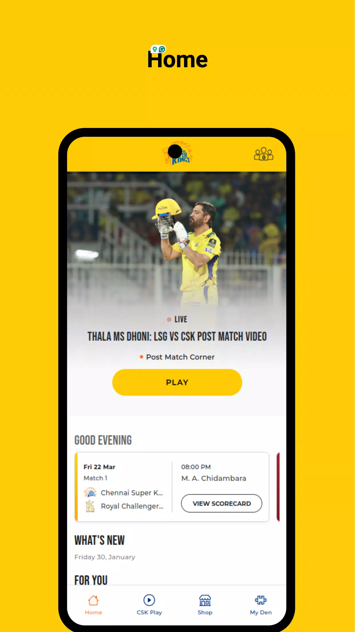 使用全新官方钦奈超级国王队安卓应用程序,随时随地关注钦奈之光。这款用户友好的应用程序将帮助您与球队保持联系,并第一时间获取钦奈超级国王队的最新资讯、精彩比赛、酷炫周边商品等等。