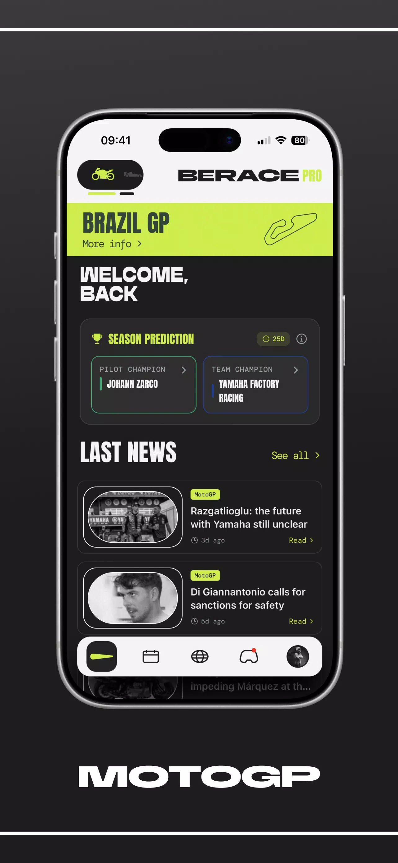 有了 BERACE,你可以在整个赛季中预测赛况、及时反应并与他人一较高下。