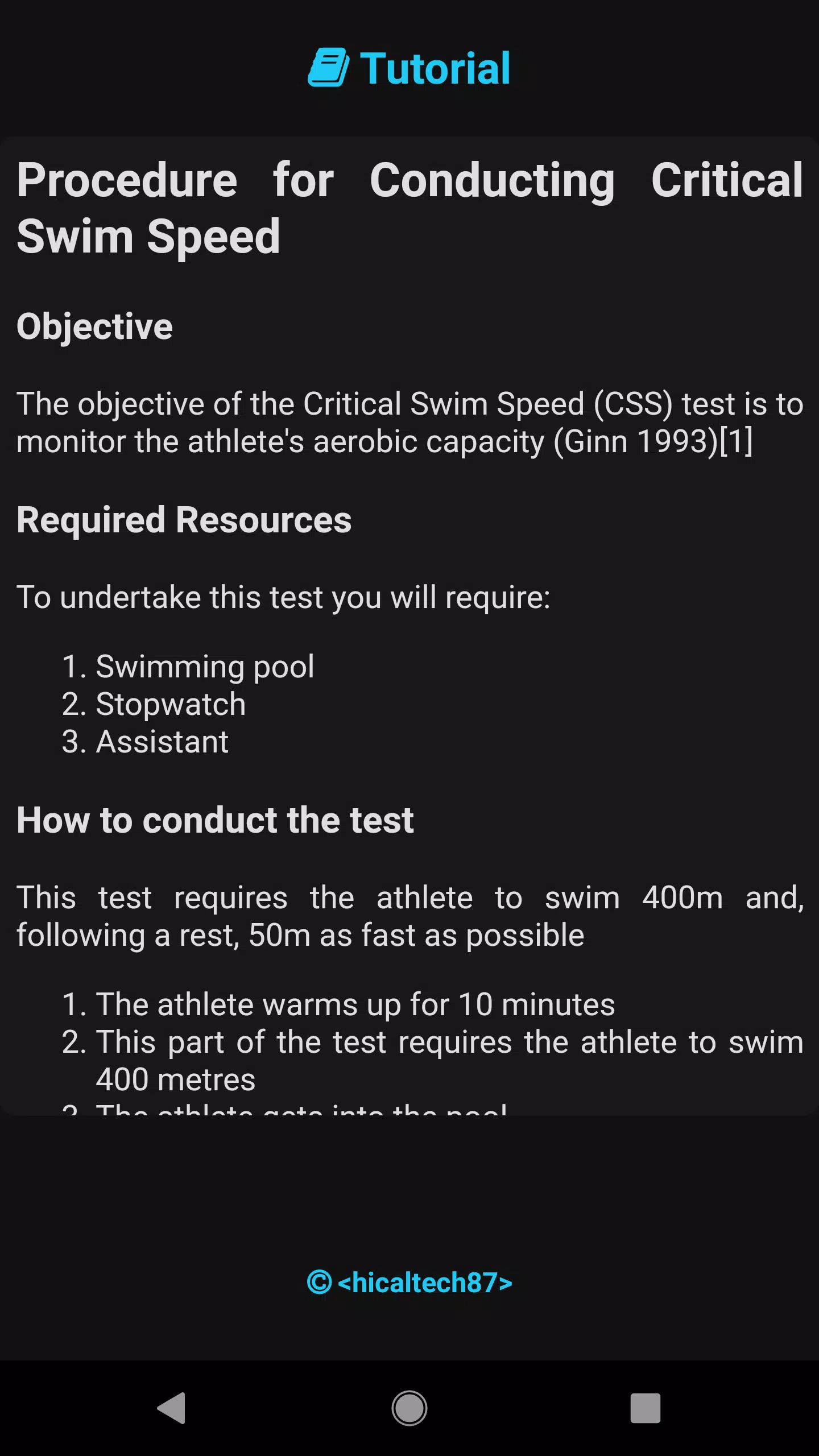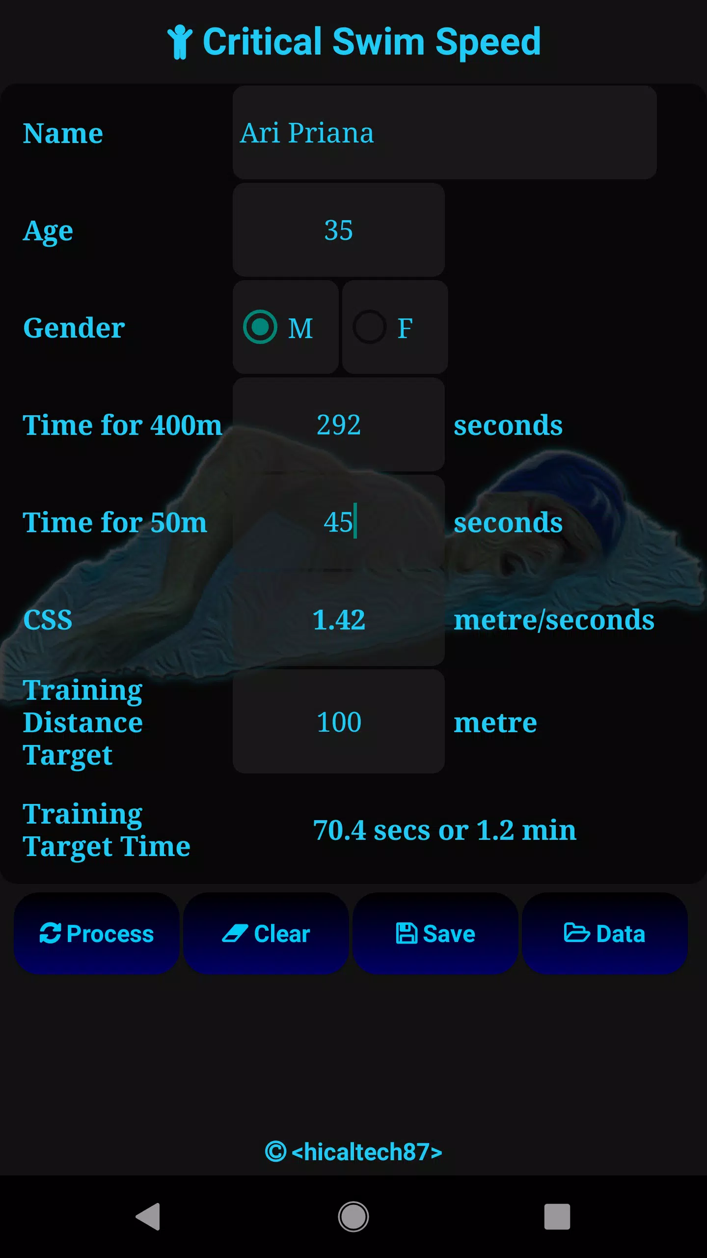 完成 400 米和 50 米游泳速度测试后,计算出以秒为单位的时间结果,该结果必须纳入本应用程序。