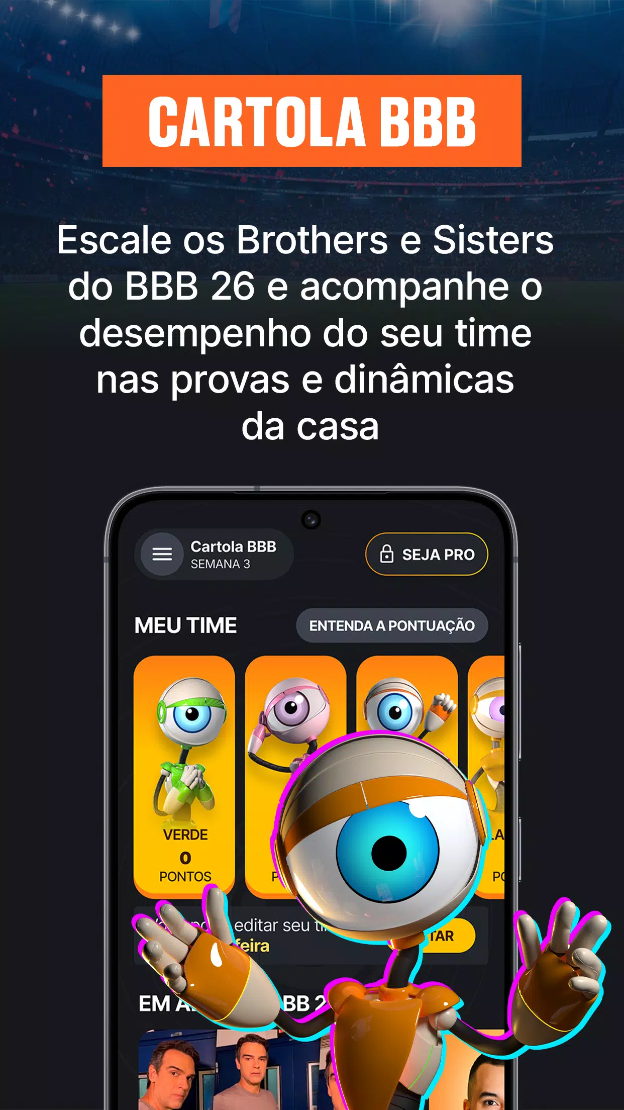 Cartola BBB:组建您的 Big Brother Brasil 26 参赛队伍,根据他们在挑战赛、淘汰赛和 BBB 节目中的表现积累积分。