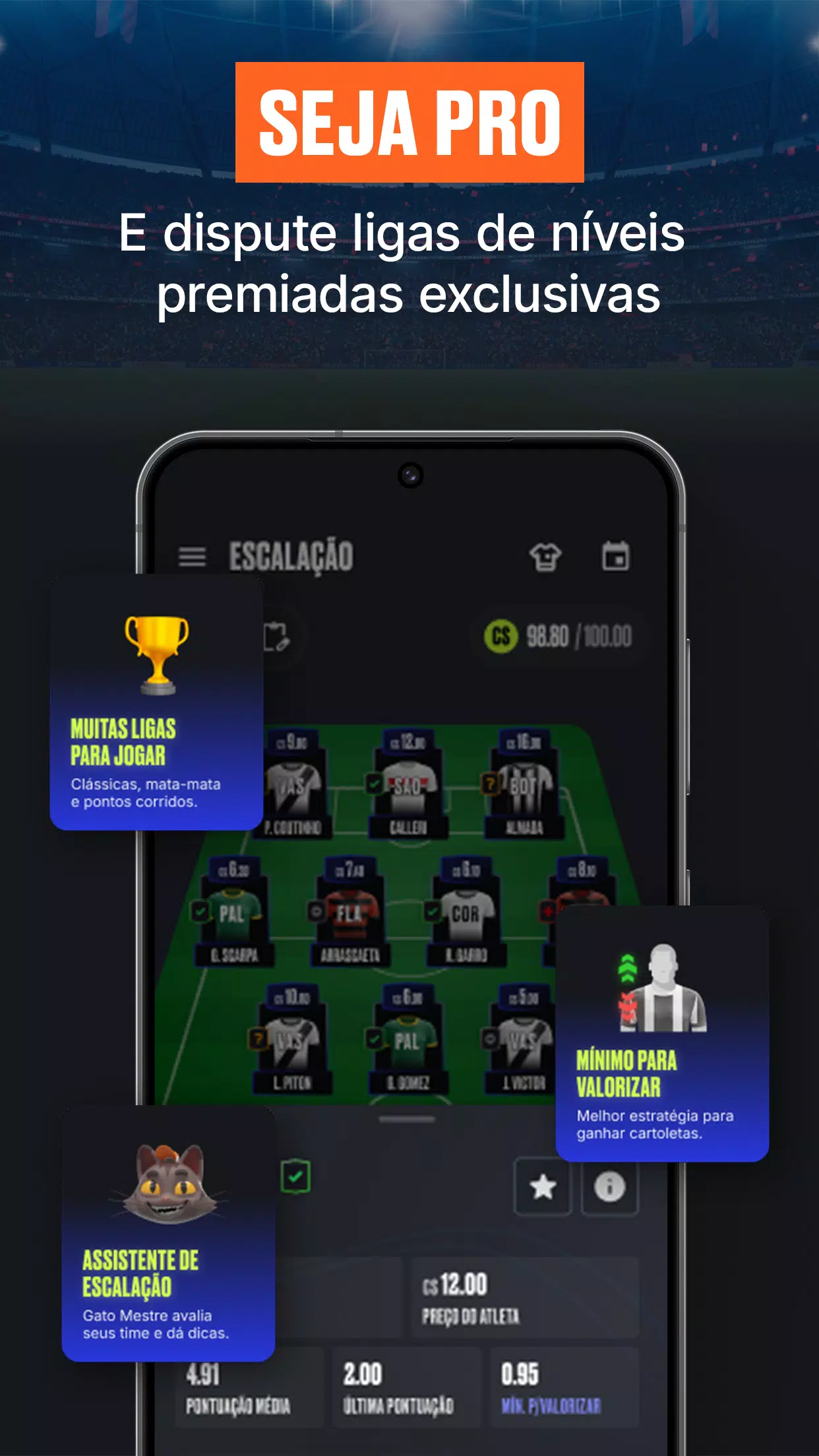 Cartola 是所有足球迷的理想之选,助您展现对巴西甲级联赛、欧冠联赛等赛事的全面了解!组建您的梦之队,挑选巴西联赛的顶尖球员,尽情展现您的足球知识。实时关注比赛比分,查看您的联赛排名!