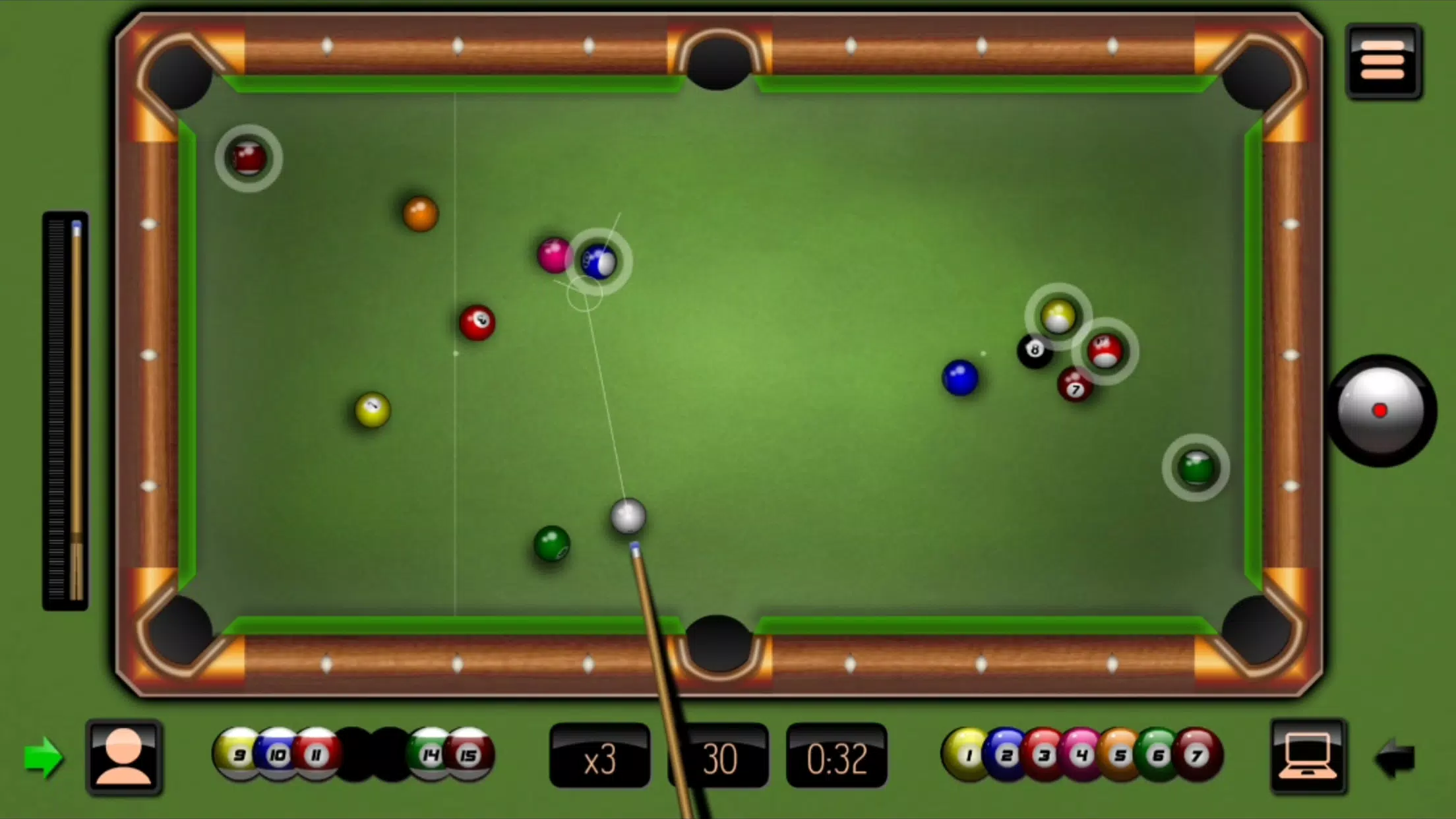 你用众所周知的简单8球规则打球。你必须把所有的球,无论是条纹球还是纯色球。如果你已经成功地从台球桌上取下所有的球,现在是时候把黑八球放在你想要的任何口袋里。