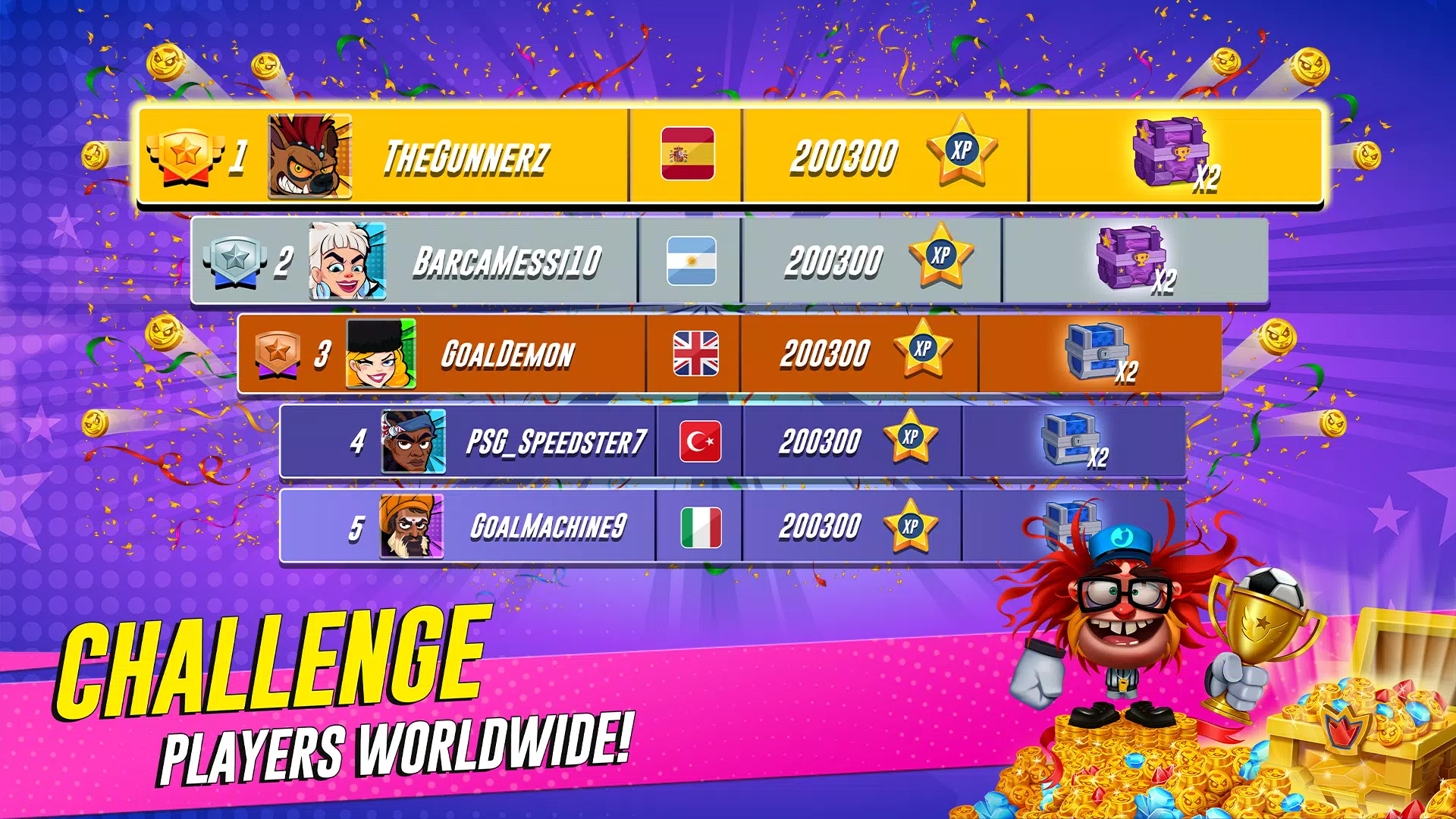 全新前锋:收集拥有大头和更强技能的独特角色。