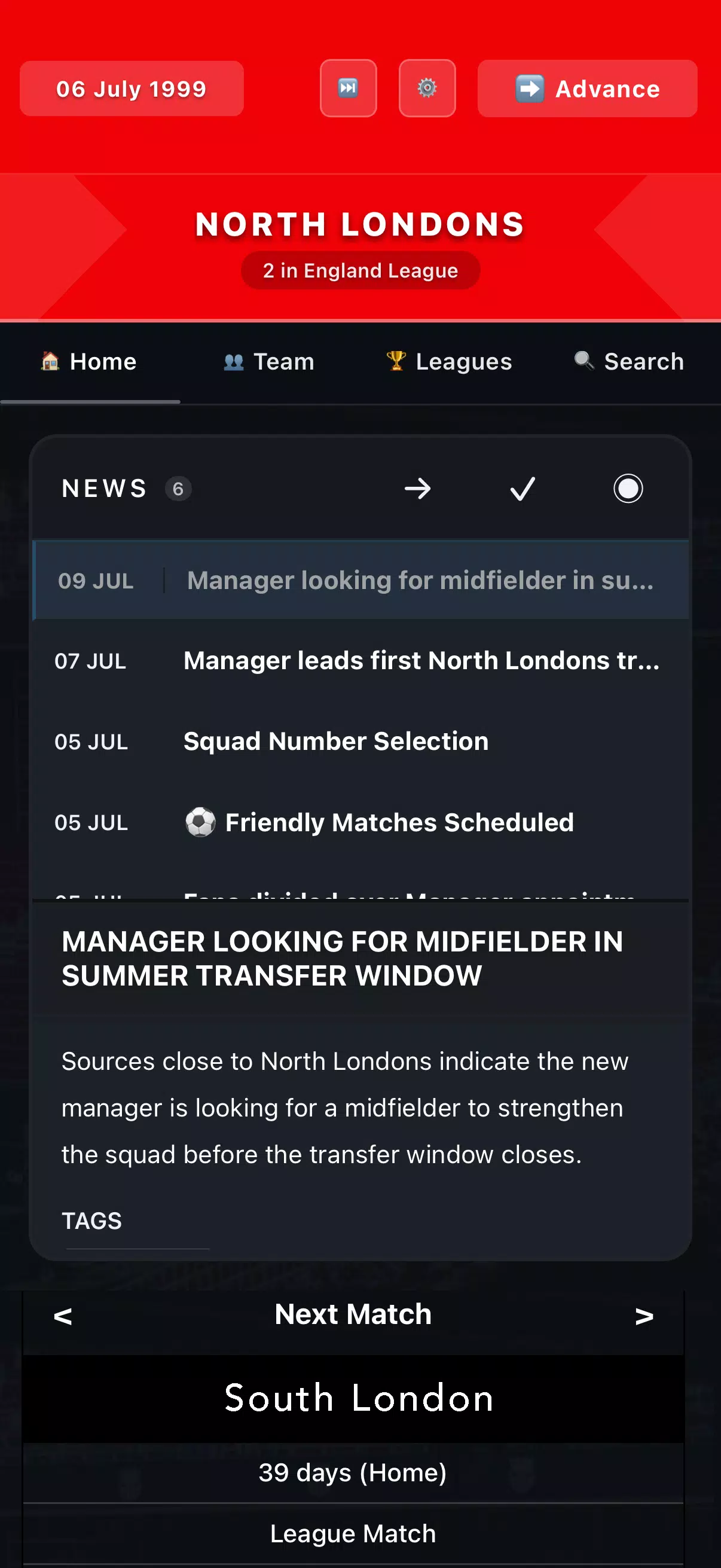 转会遵循真实的规则。球员拥有合同、期望、状态和士气。并非所有球员都适合所有俱乐部,因此长远规划至关重要。青训、阵容平衡和财务决策在打造一支成功的球队中起着关键作用。