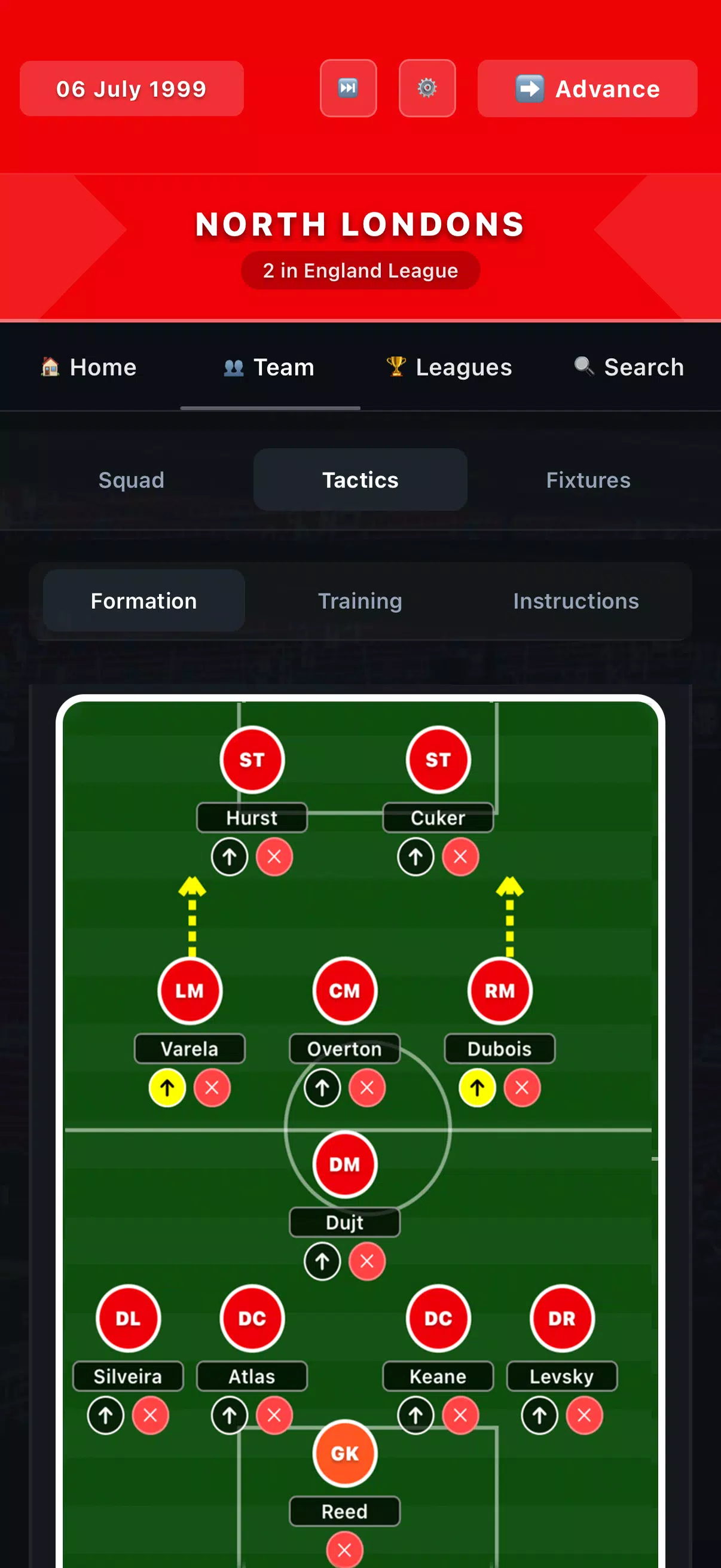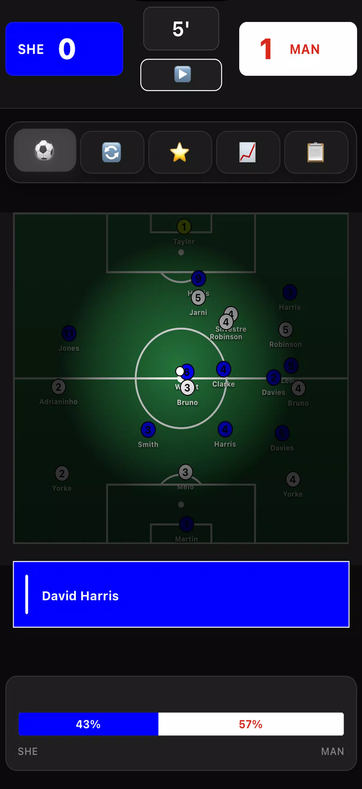 比赛采用精细的比赛引擎进行模拟,阵型、球员角色、球队心态和比赛中的决策都至关重要。战术选择会影响球队在整场比赛中的进攻、防守和反应,从而产生丰富且可信的结果。