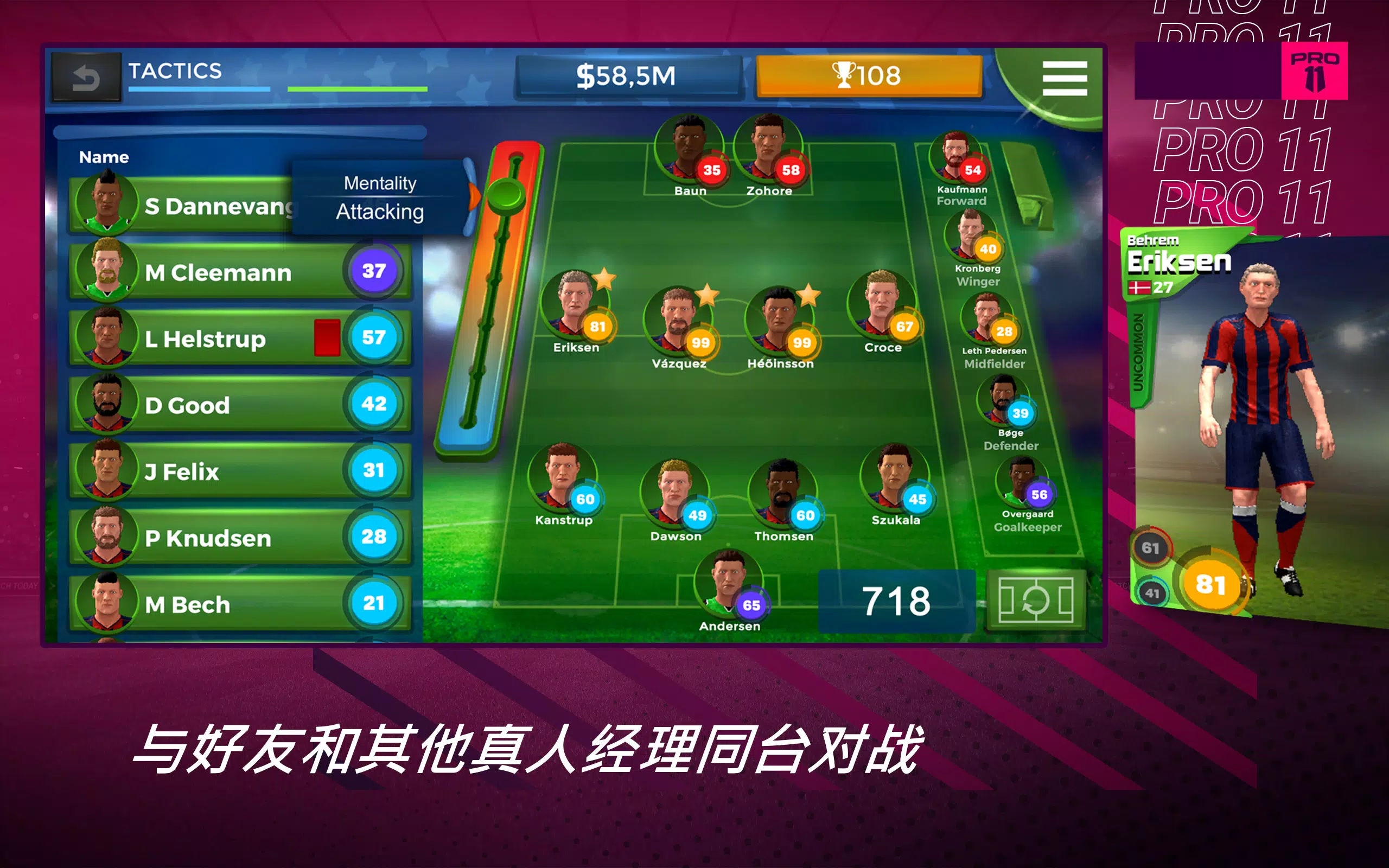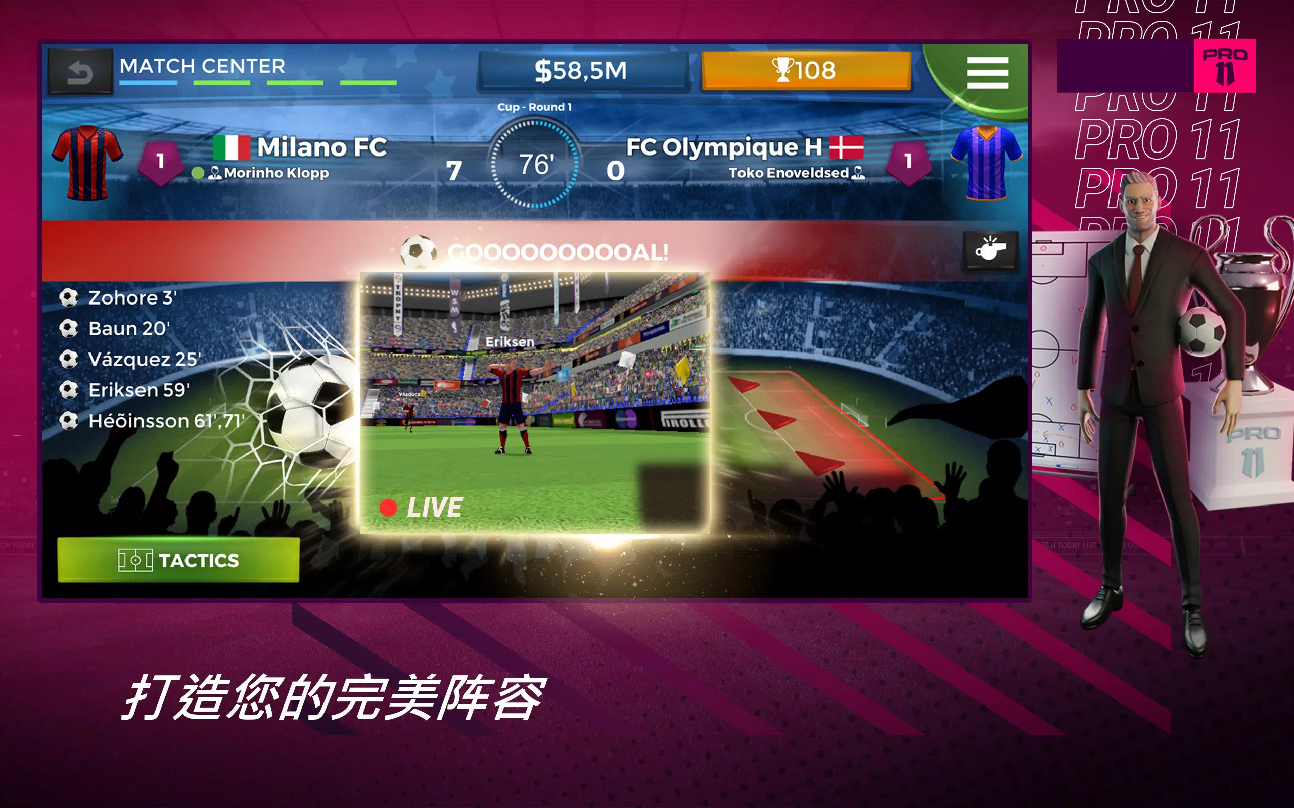 现在就加入《Pro 11》全球范围的经理人行列,成为一名真正的职业足球队领袖吧。享受每一次进球!