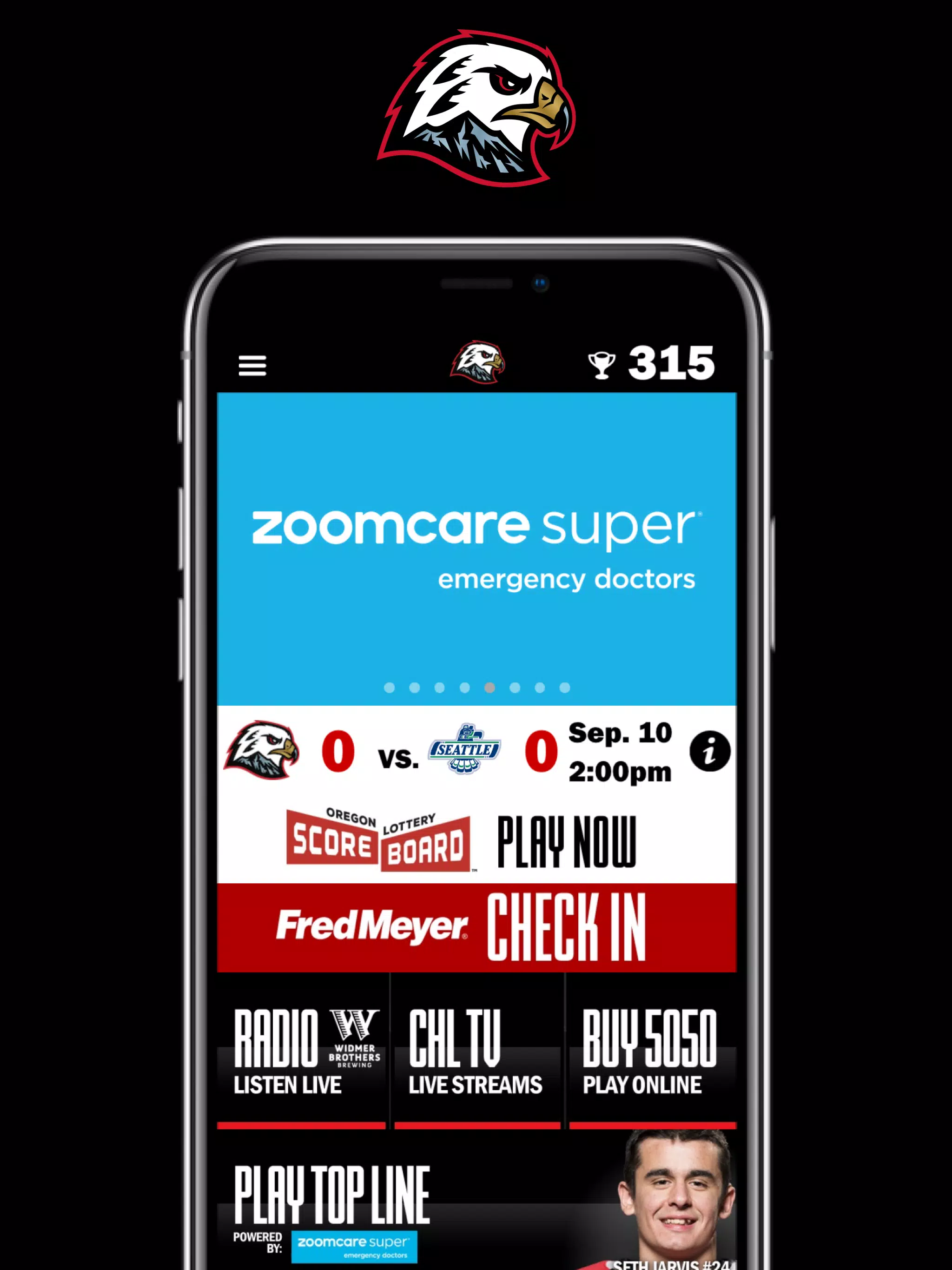 – 在冬鹰队所有主场比赛中畅玩“Top Line”梦幻体育游戏
