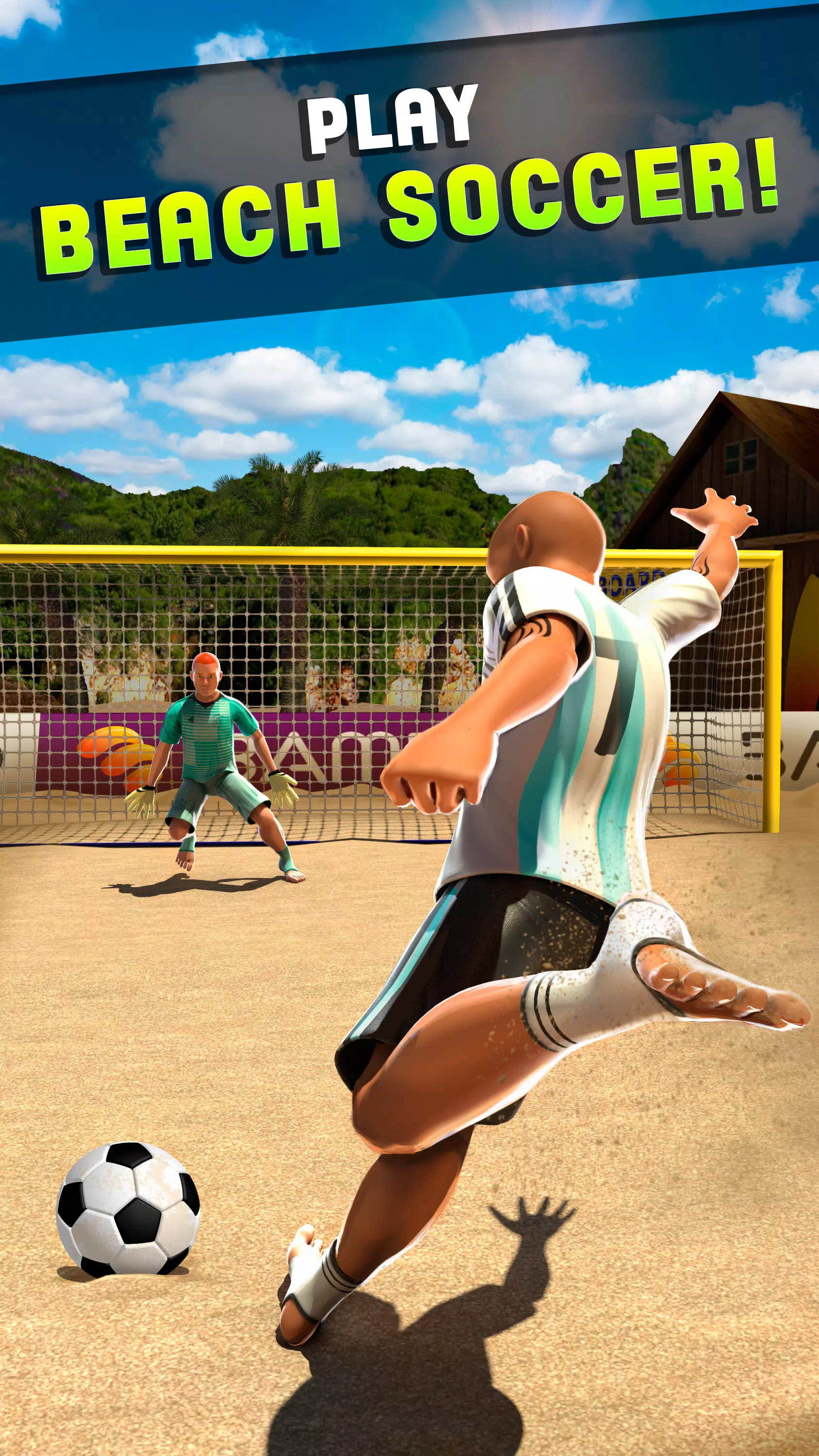 拍摄目标沙滩足球2017最好的沙滩足球游戏!这个游戏是完全免费的,但你可以购买一些玩家提升技能或游戏资产。
