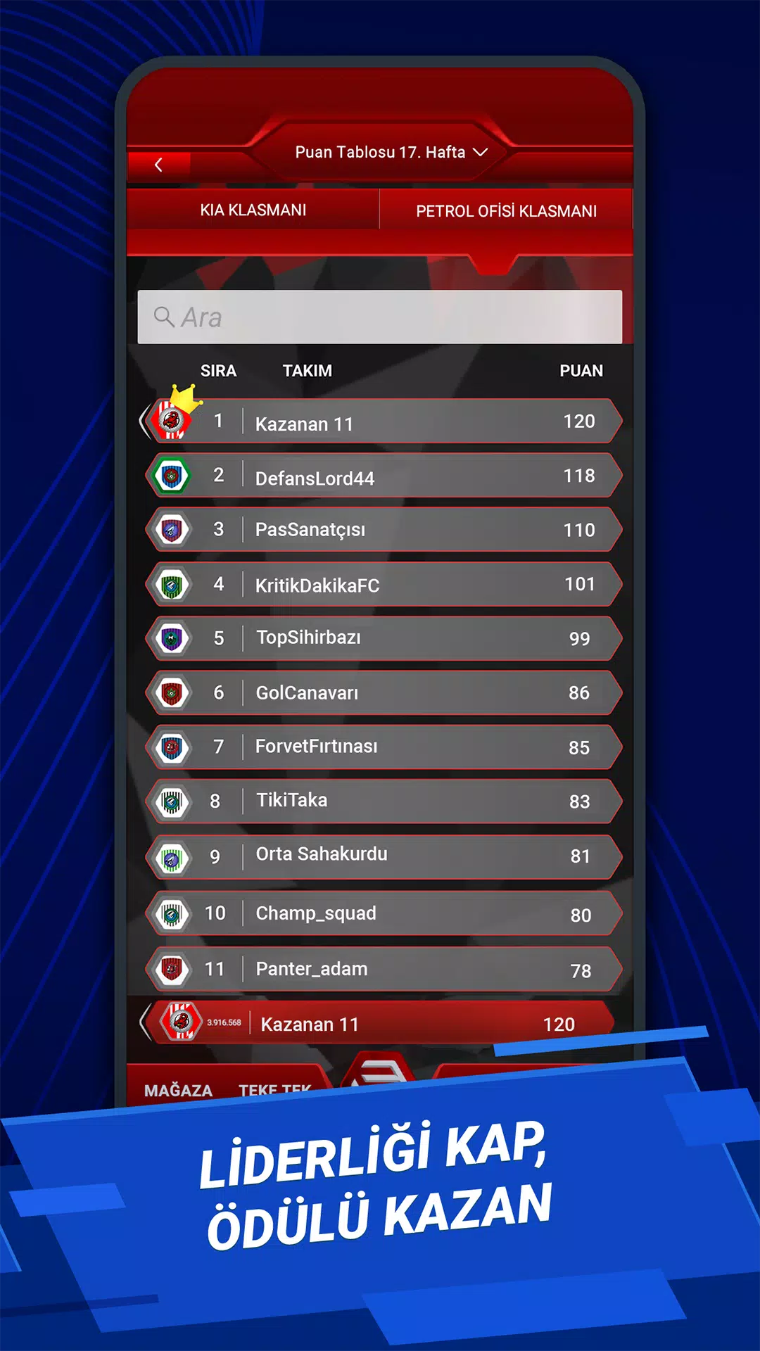 – Petrol Ofisi 排名:每周获得 Petrol Ofisi 提供的燃油奖励