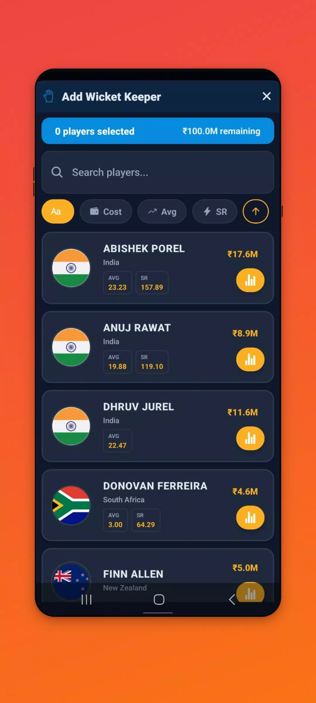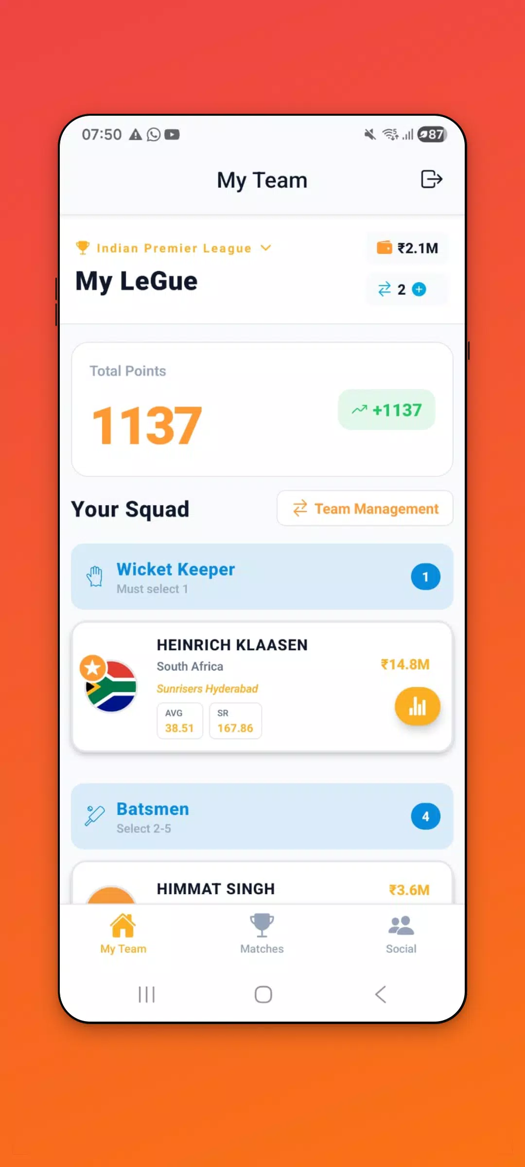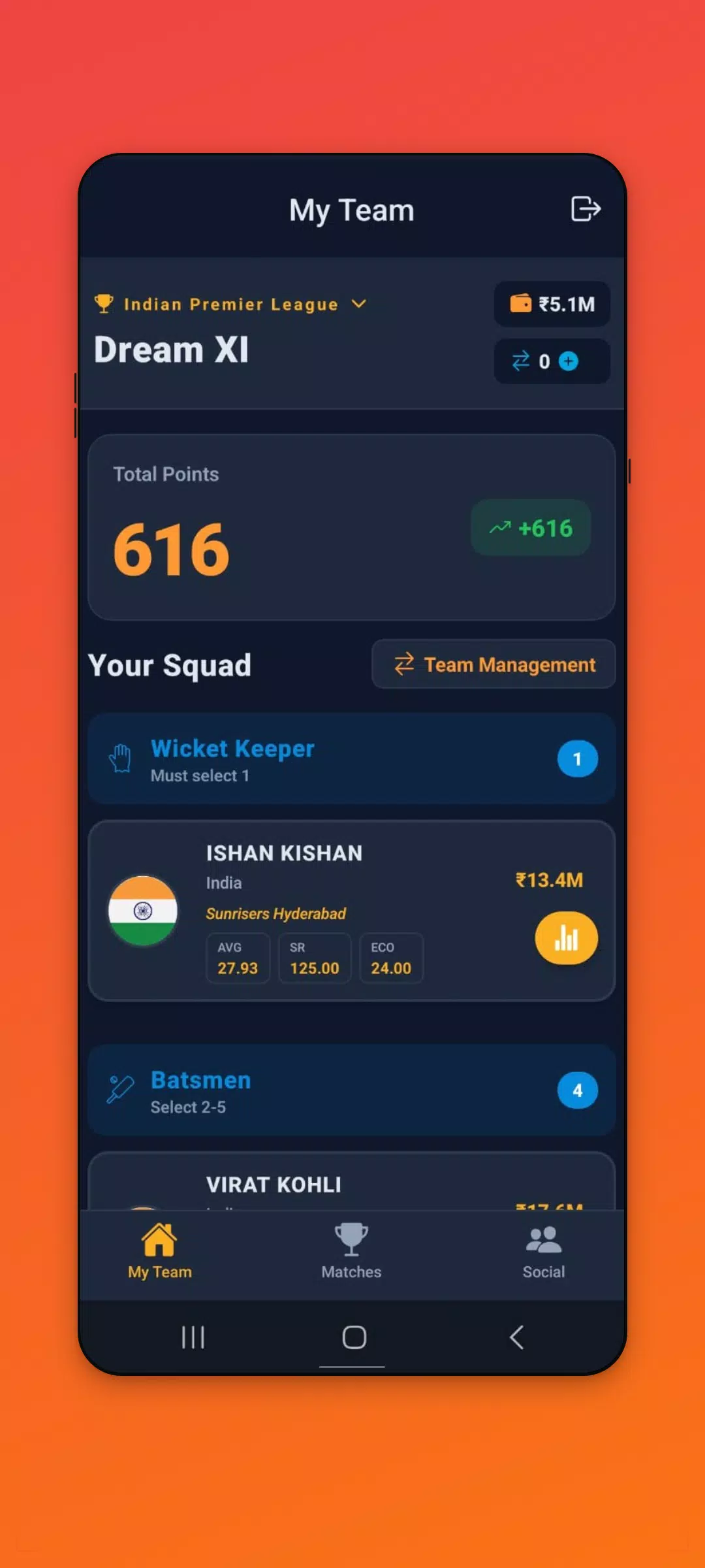 打造你的梦幻板球队,挑选首发阵容,选出队长,根据真实比赛表现赢取积分。每一次得分、每一次三柱门、每一次接球都至关重要。