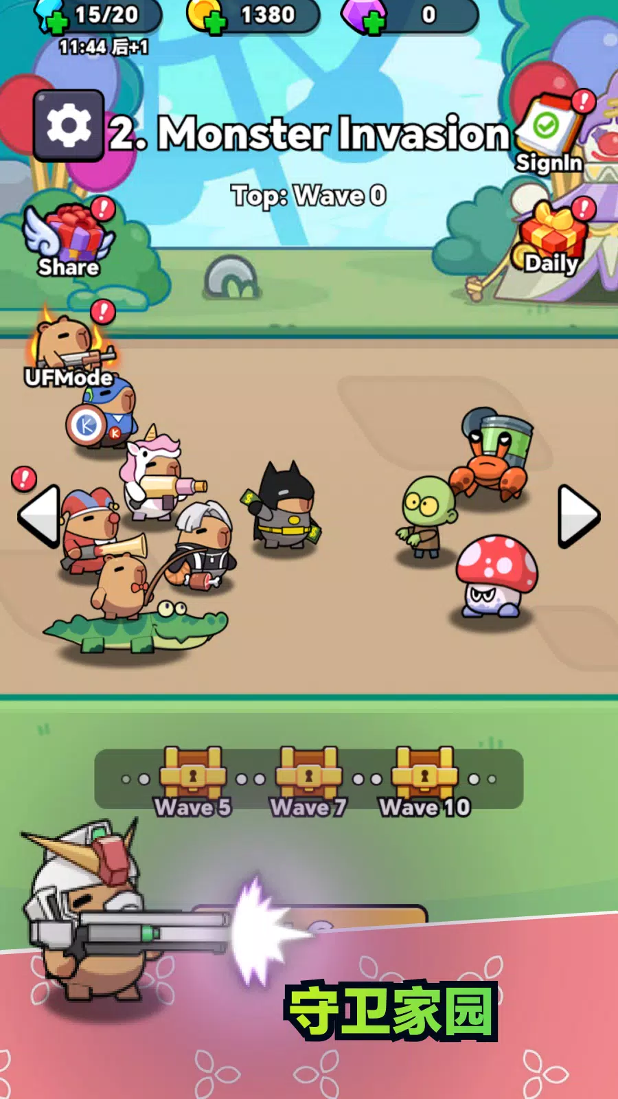卡皮巴拉们被僵尸和怪物入侵了,帮帮它们战胜邪恶的入侵者吧