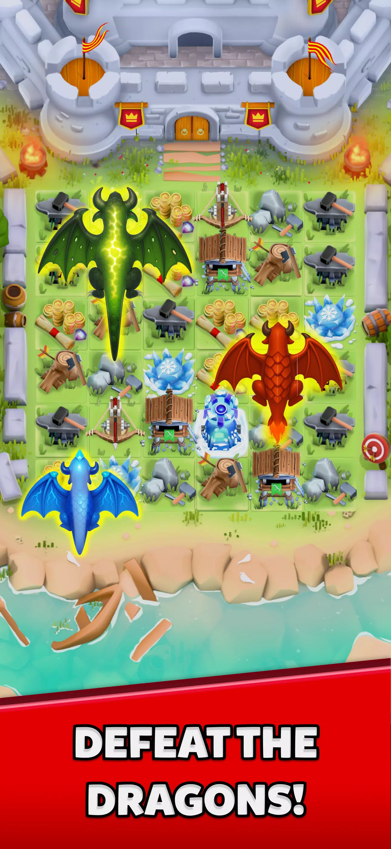 ✔ 合并塔防以解锁强大的防御工事,巩固你的王国。