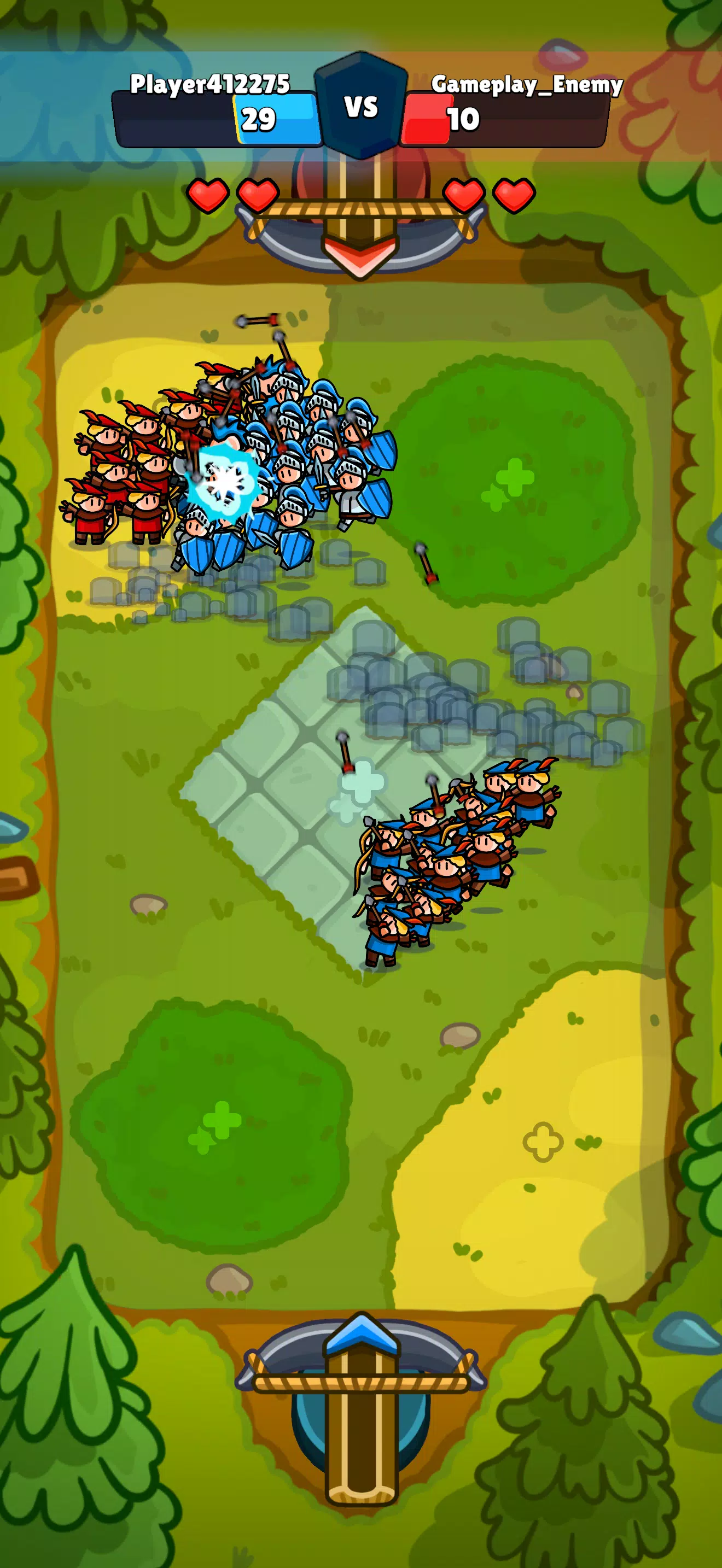 将你的英雄棋子部署到战场上,争夺最佳增益区域,并将敌人从关键位置驱逐出去。部署阶段结束后,你的棋子将组成一支军队,自动战斗随即开始。巧妙的部署 + 精妙的克制 = 胜利。