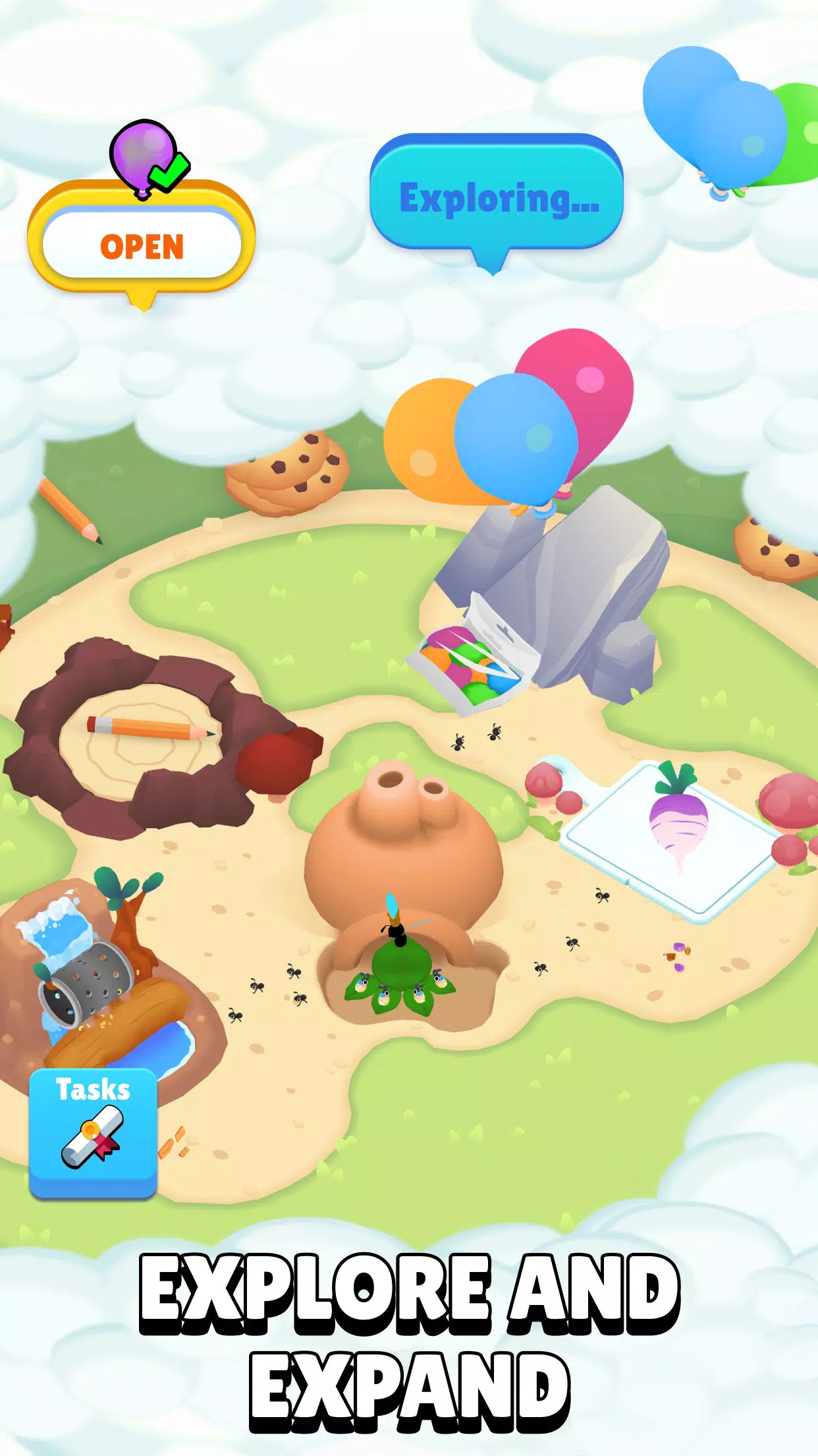 – 战斗:训练蚂蚁,参与战斗,让你的蚁群繁荣昌盛。对抗掠食性昆虫和其他威胁,保卫你的边界。