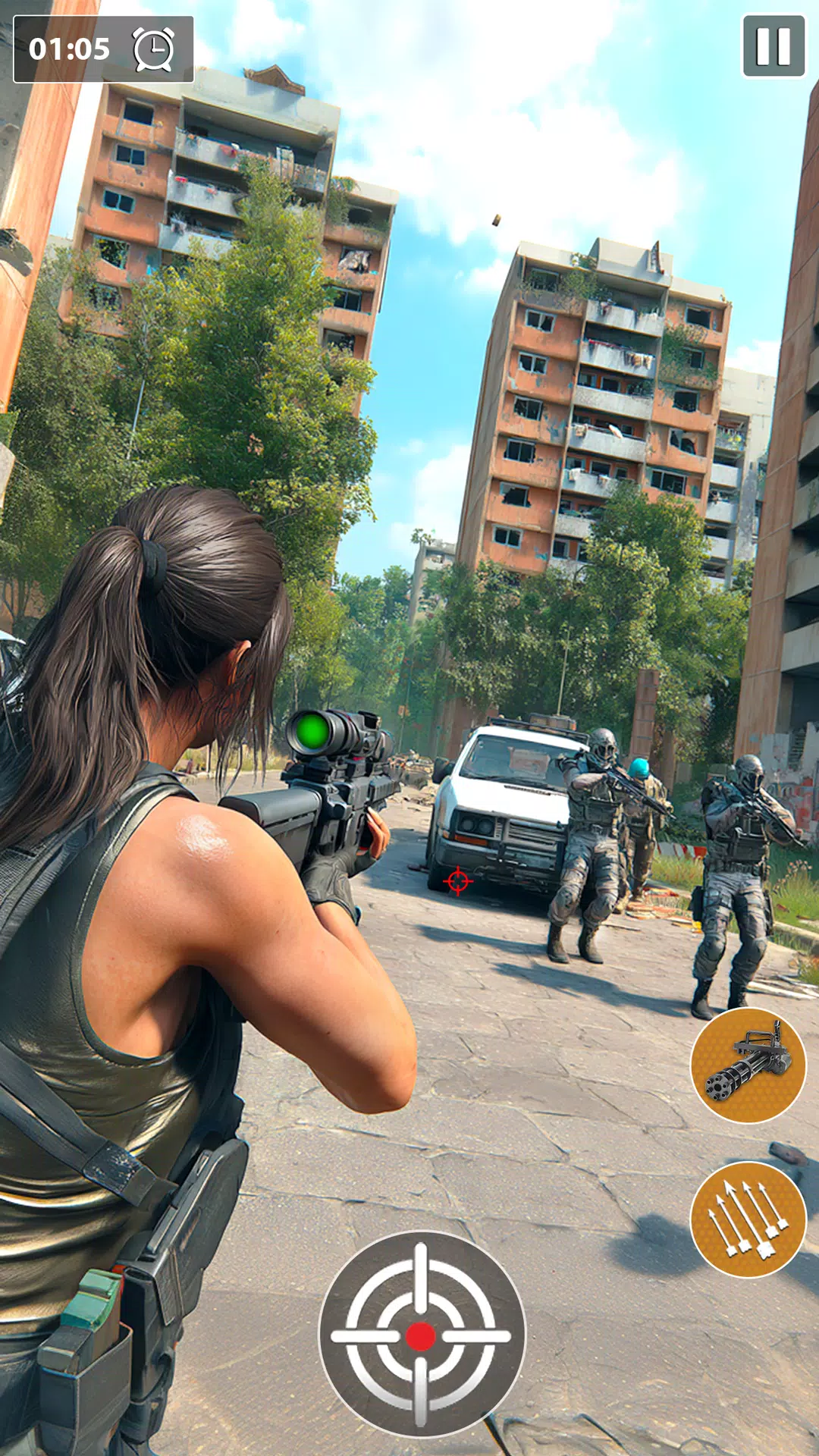 下载《枪战少女:战争动作冒险》——这款深受射击游戏、战术动作和第一人称射击游戏爱好者喜爱的离线射击冒险游戏!