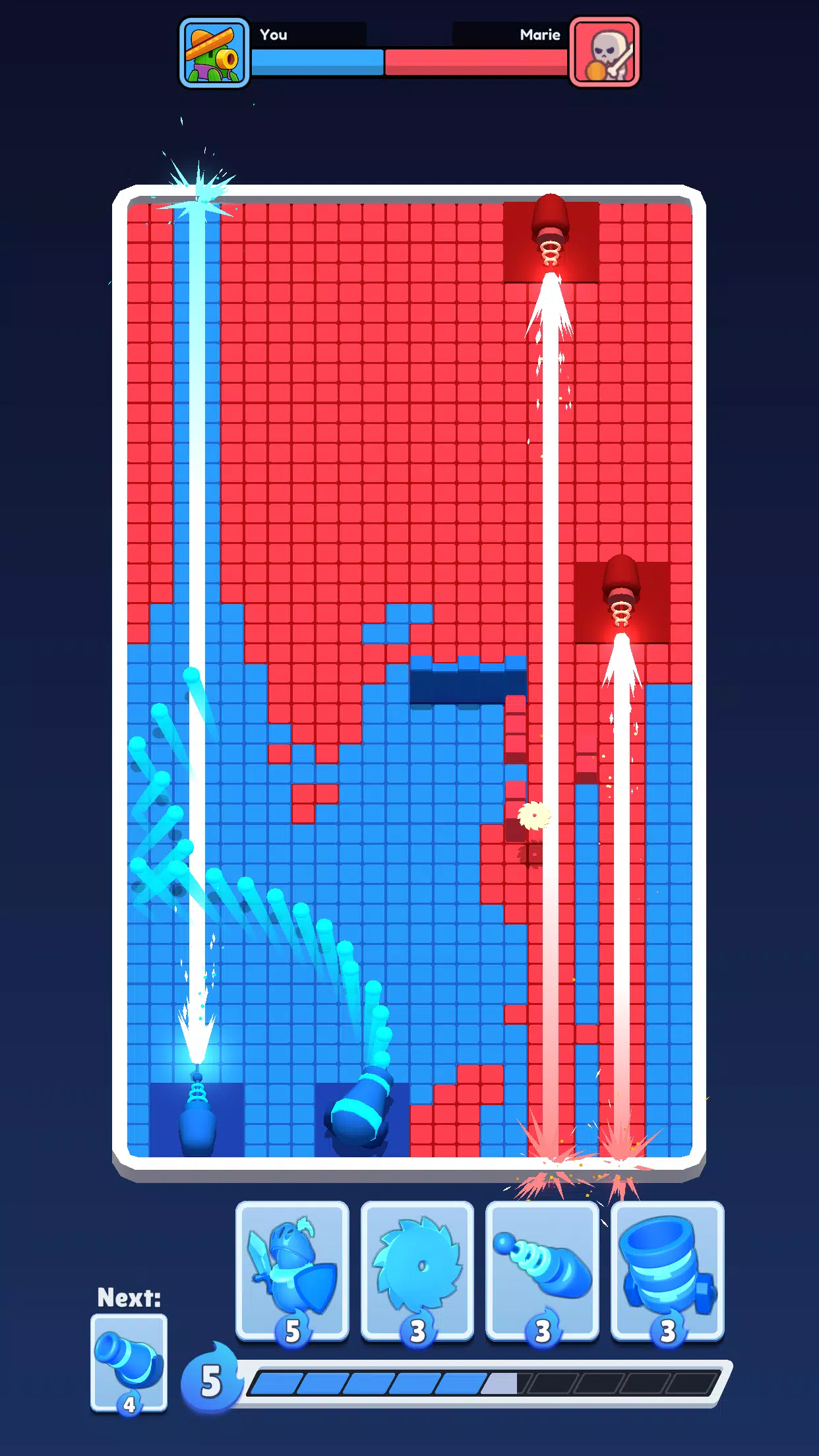 深入策略与生动混乱相遇的激动人心的战斗竞技场! 在这个卡牌游戏中,玩家在红与蓝之间争夺领土,通过给竞技场着色。每张卡片释放具有特殊能力的独特单位,以智取对手并统治比赛。 战斗,策略,用色彩赢得胜利!你准备好夺取权力的调色板了吗?