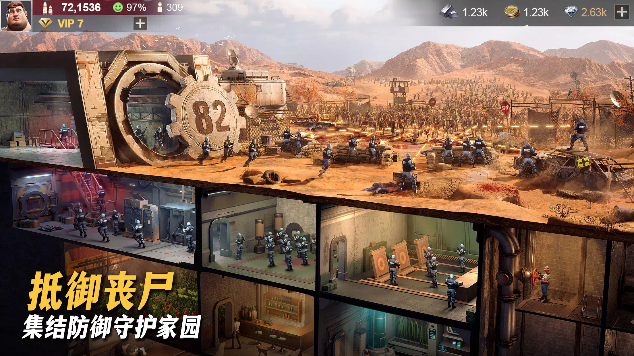 你是这些幸存者的指挥官。在逃离丧尸大军的时候,你发现了一个奇怪的建筑从地上伸出来。物资短缺,别无选择,你决定在这栋楼里避难。所以开始你的生存战役在这个丧尸出没的世界。