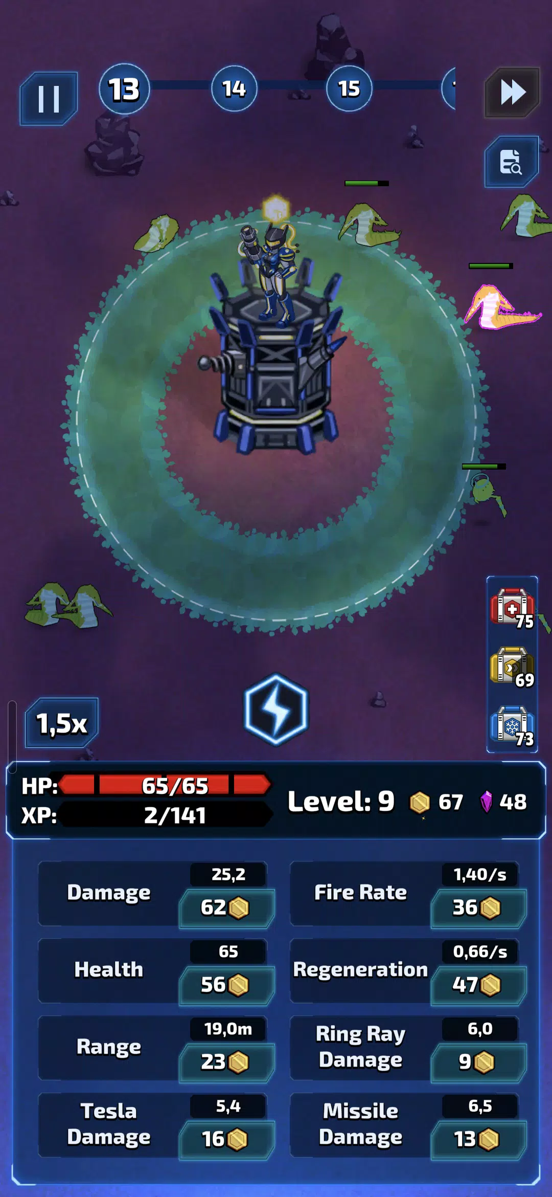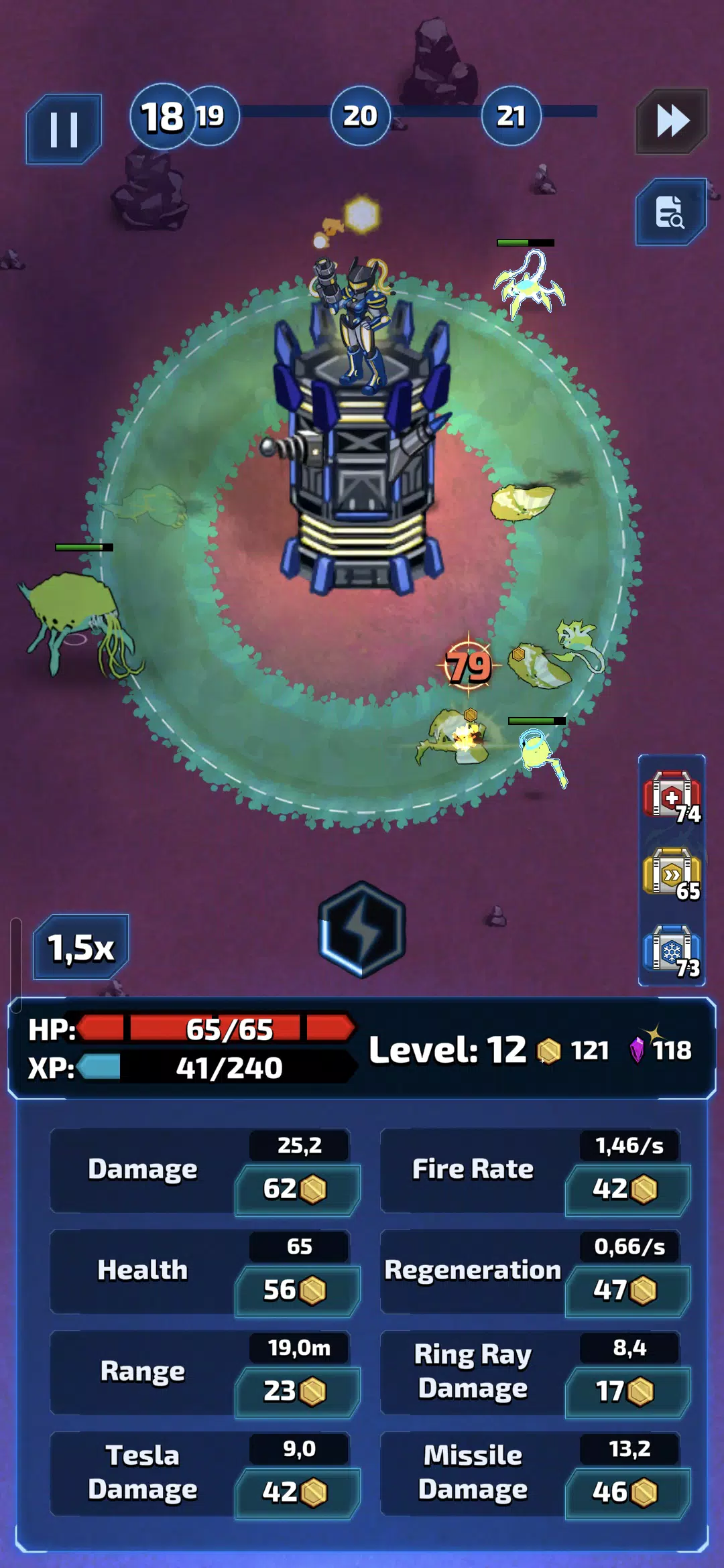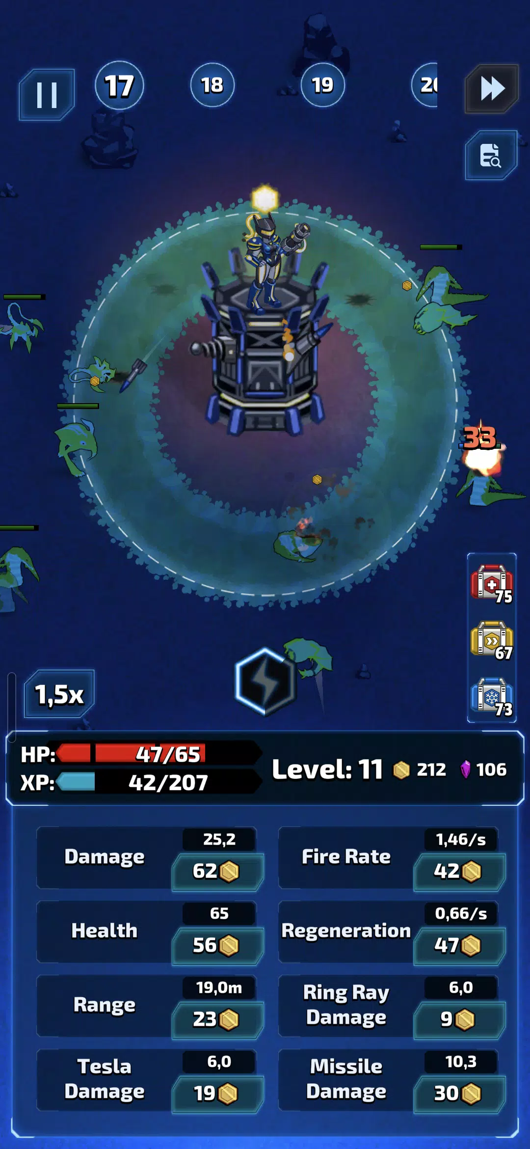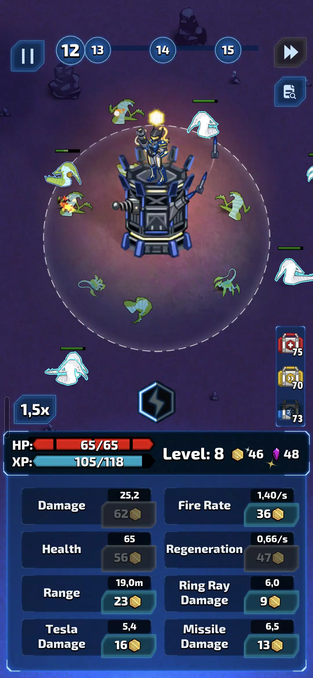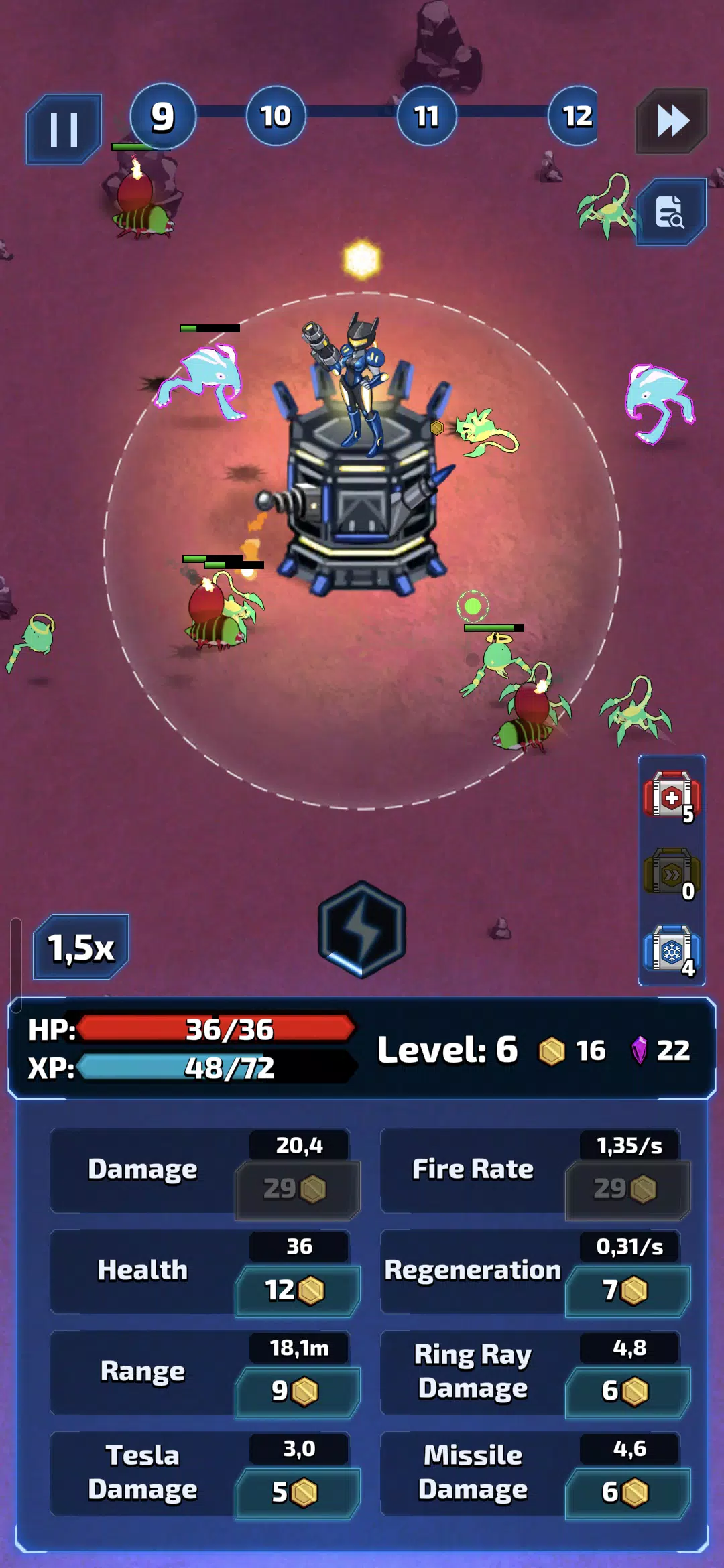 你是宇宙舰队的队长,率领舰队在银河系中扩张统治地位。在遥远的星球上建造和升级你的塔防,在每一波攻击后获得经验值,并解锁强大的强化道具,从而延长生存时间并征服新的星球。
