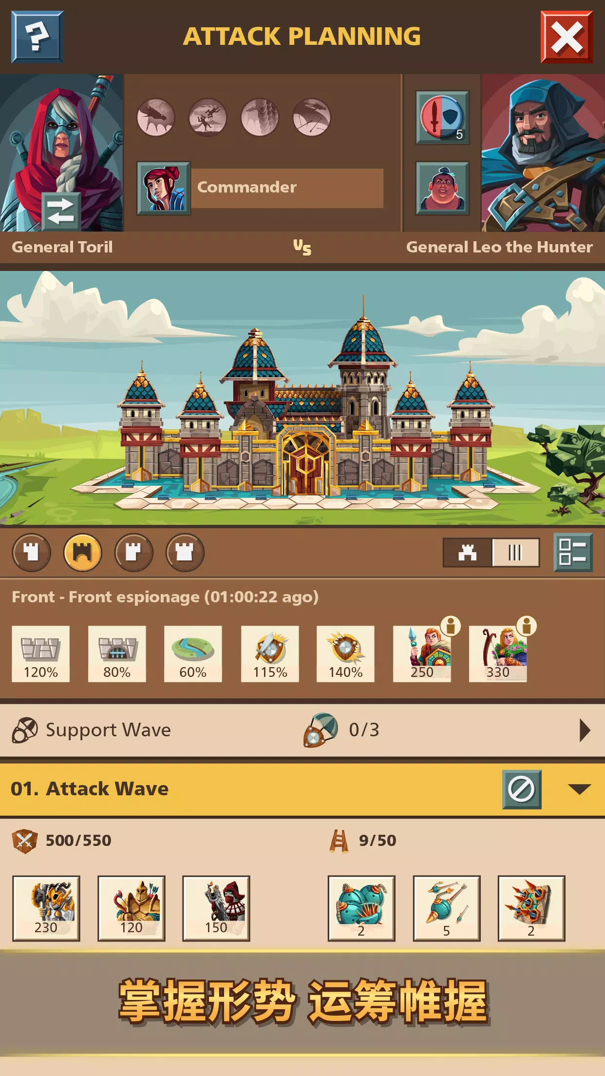 解锁强大的将军,将它们的能力转化为你的优势。胜不在兵多,而在智取。每名将军都有着特殊的天赋,可助你击败对手,但是也需灵活运用。仔细制定策略,用计谋智取敌人!