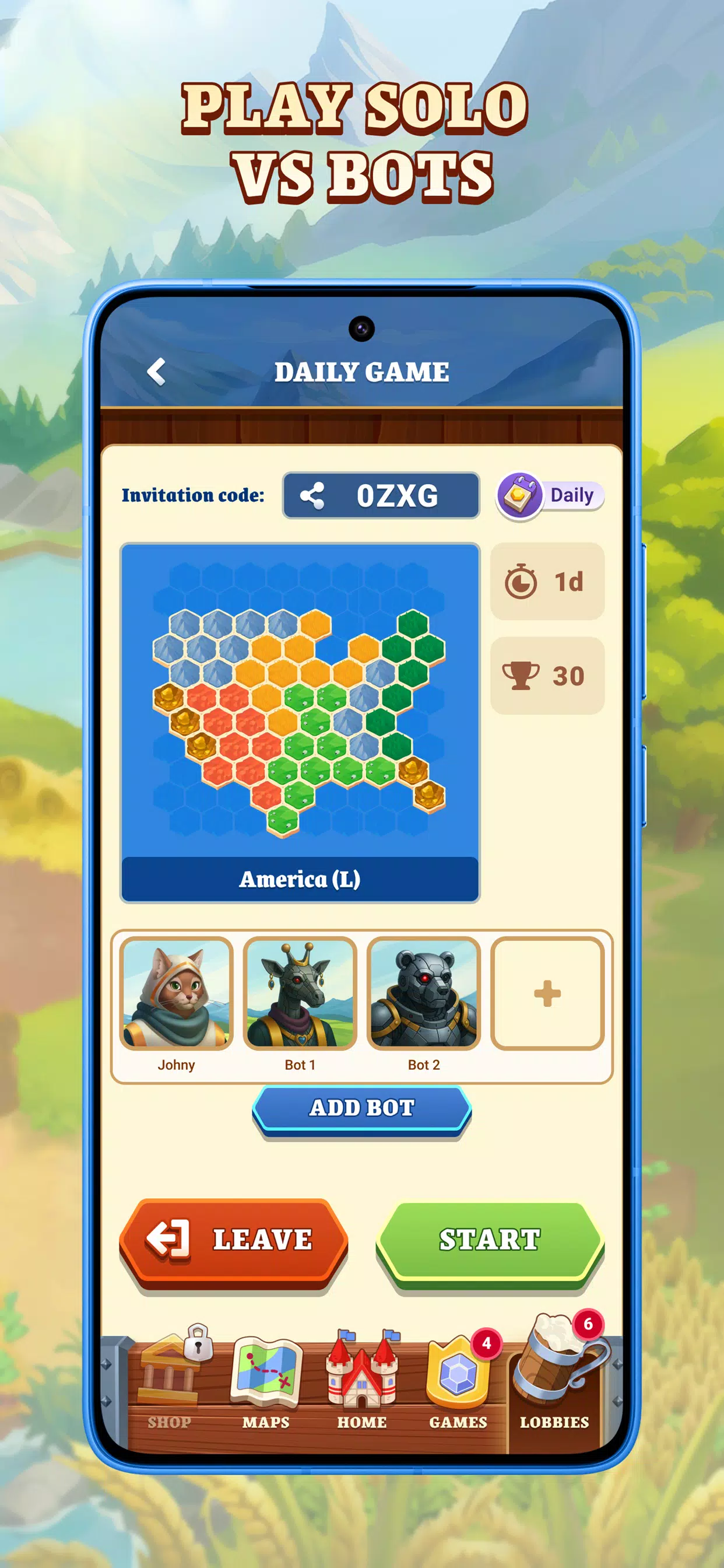 您可以与各种技能水平、性格和游戏风格各异的机器人进行单人游戏!